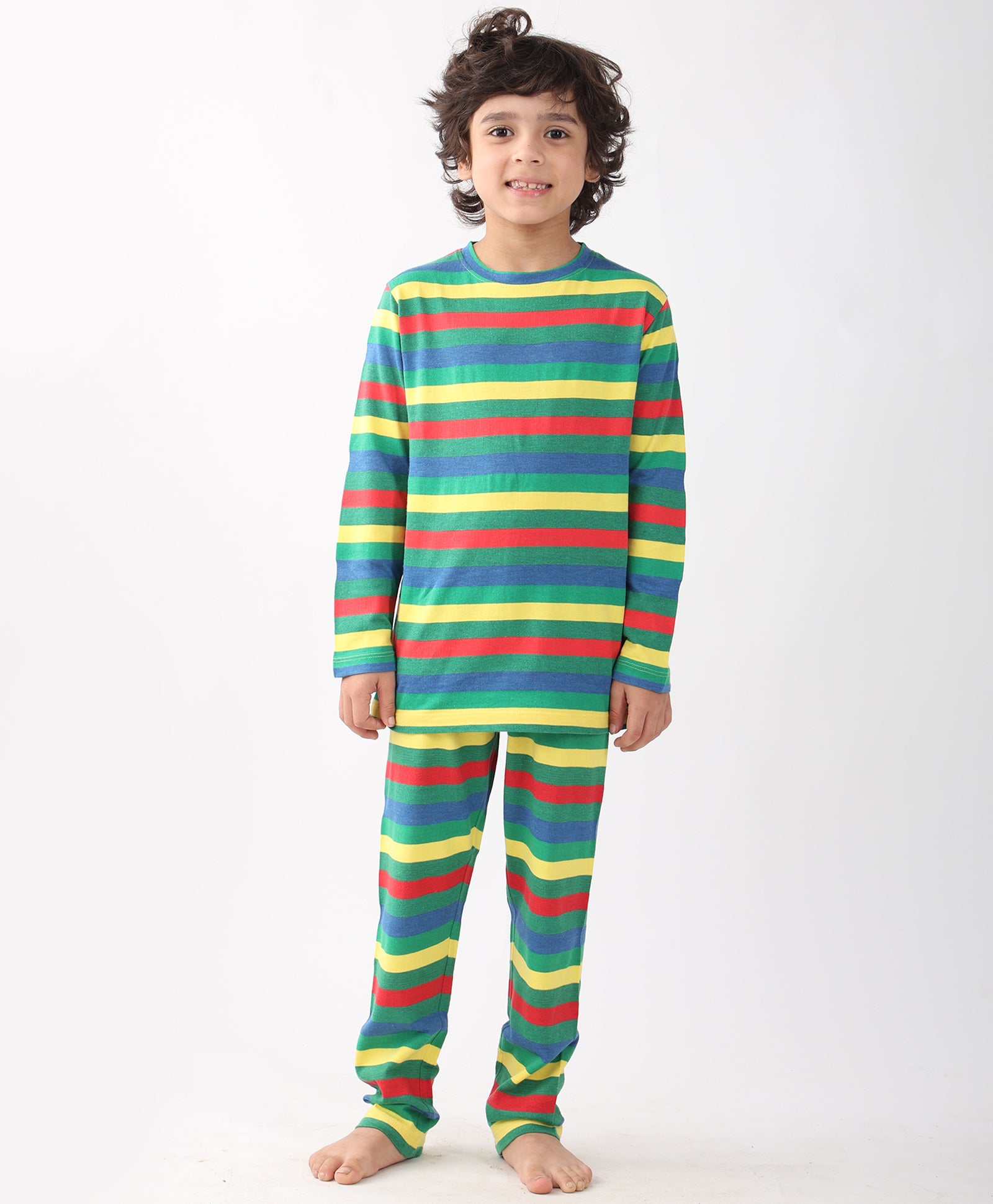GREEN YELLOW RED STRIPE BOYS PYJAMA SET - MULTI