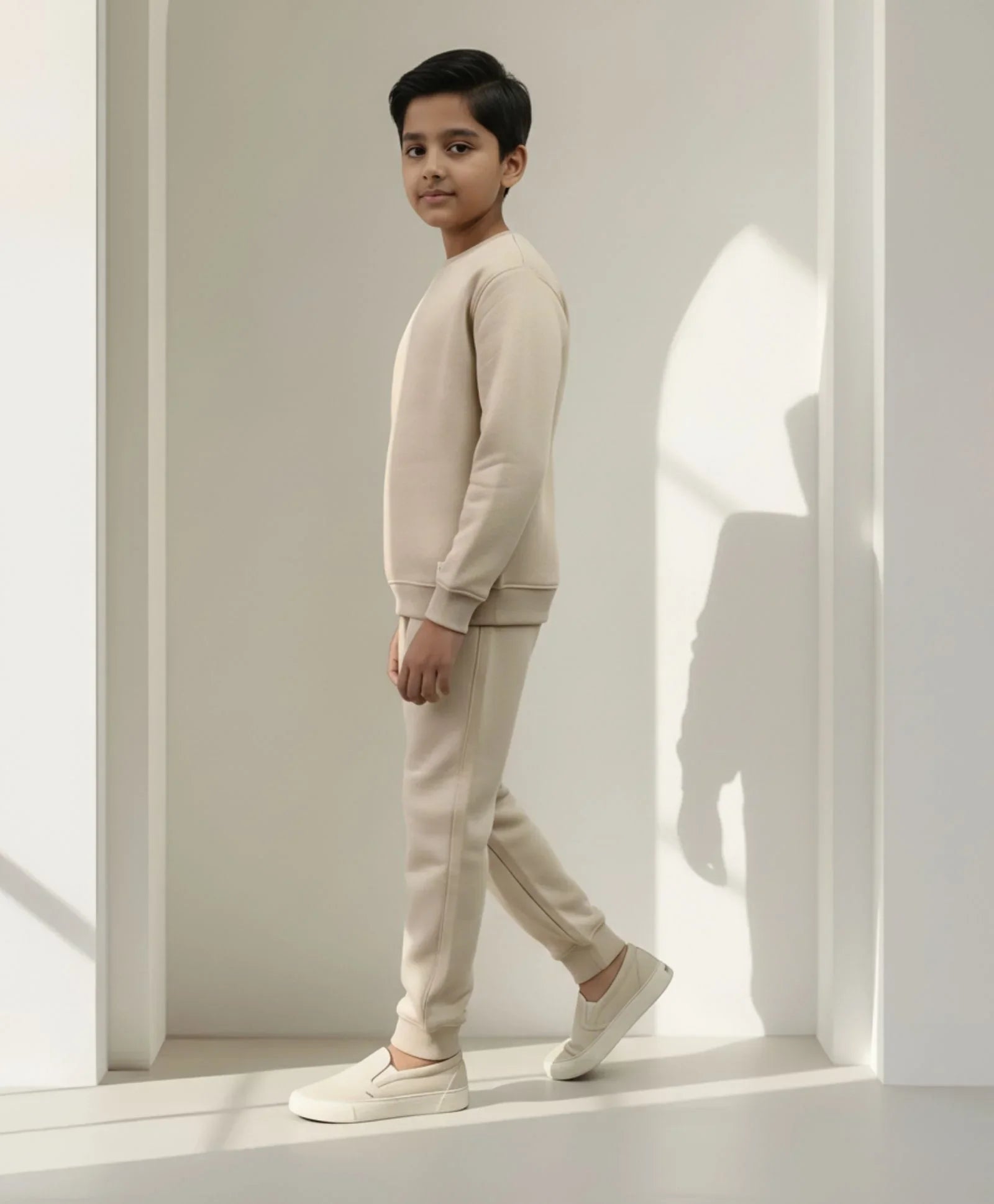 Stay comfortable in the Neutral Essentials Fleece Sweatshirt Jogger Set in soft Beige. This warm set features a plush fleece sweatshirt and matching joggers, offering essential coziness and a versatile, clean look. It’s the perfect simple, yet stylish, combination for relaxed everyday wear and ultimate warmth during cooler days.