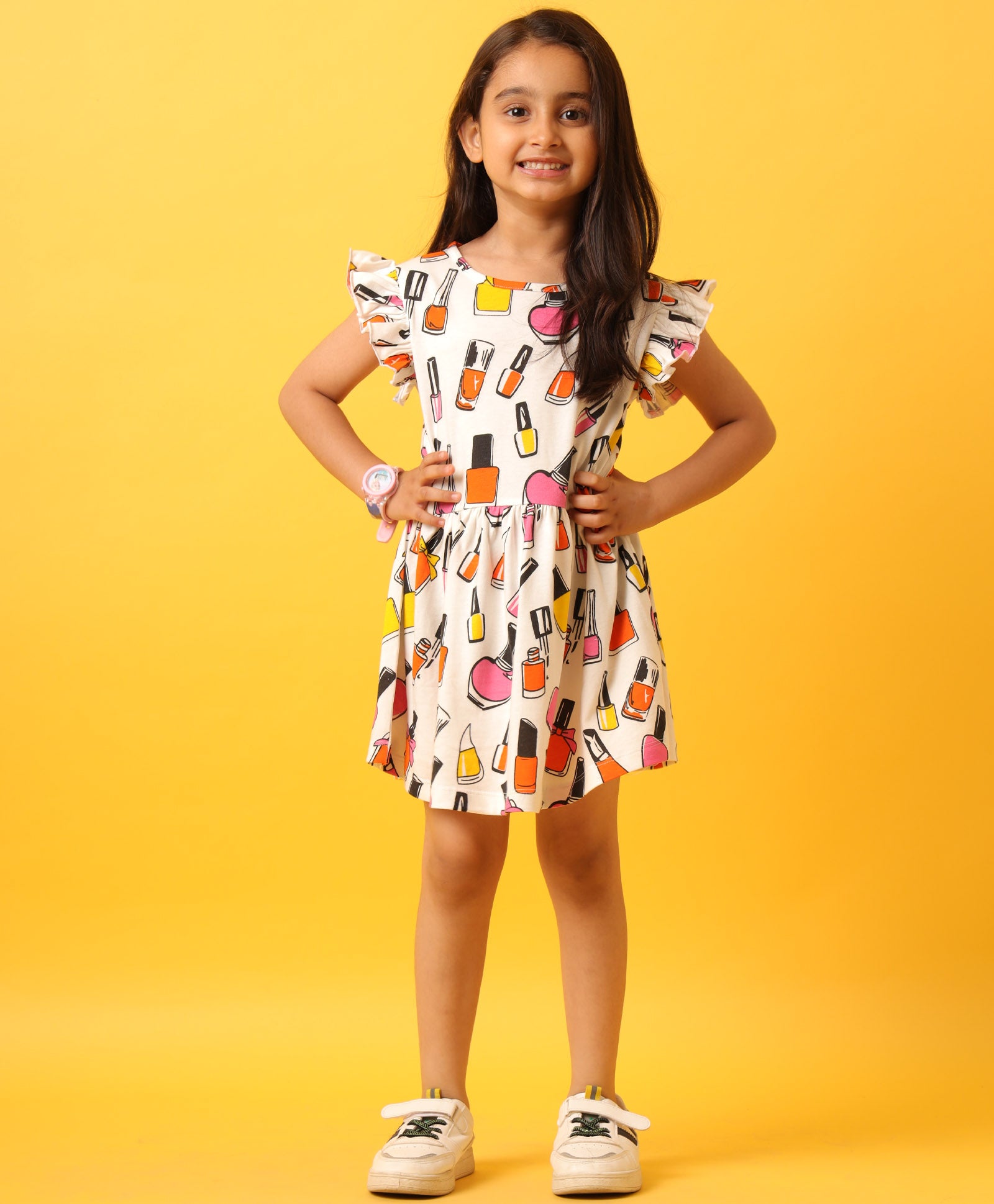 The "Nail Paint Ruffle Dress" in off-white is crafted from a soft cotton blend, offering both comfort and breathability for kids. Featuring delicate ruffles for a playful yet elegant look, this lightweight dress is perfect for special occasions or casual outings. Its classic off-white shade and soft fabric ensure both style and comfort throughout the day.