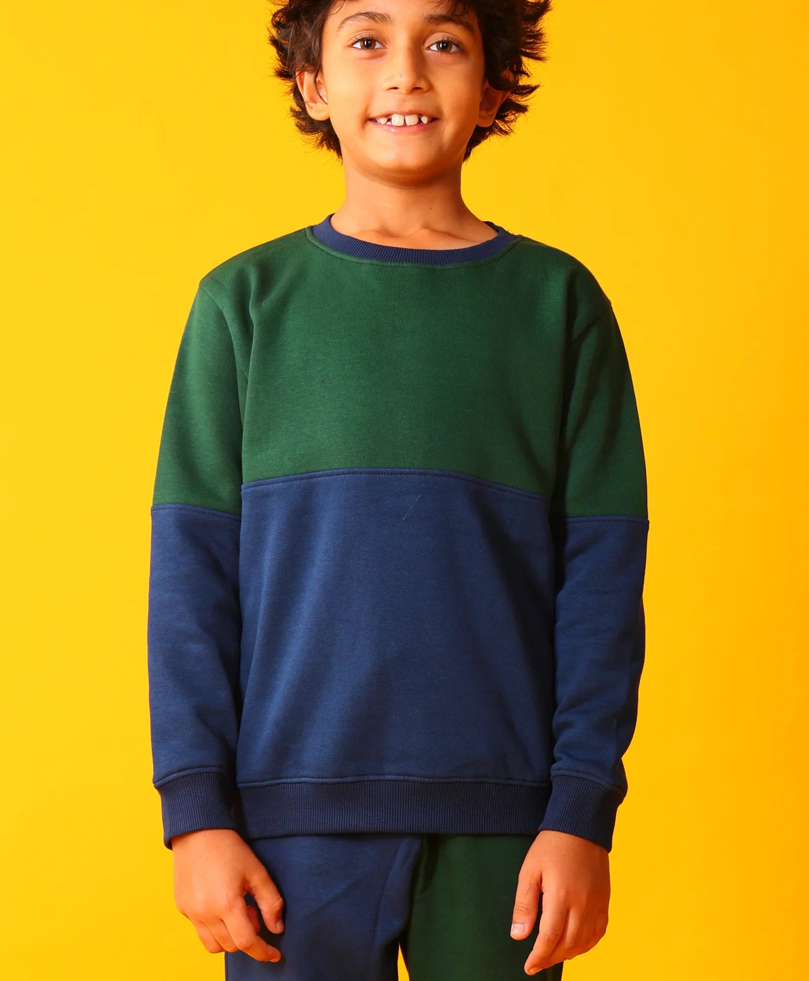 NAVY GREEN COLOR BLOCK BOYS FLEECE SWEATSHIRT JOGGER SET - NAVY/GREEN