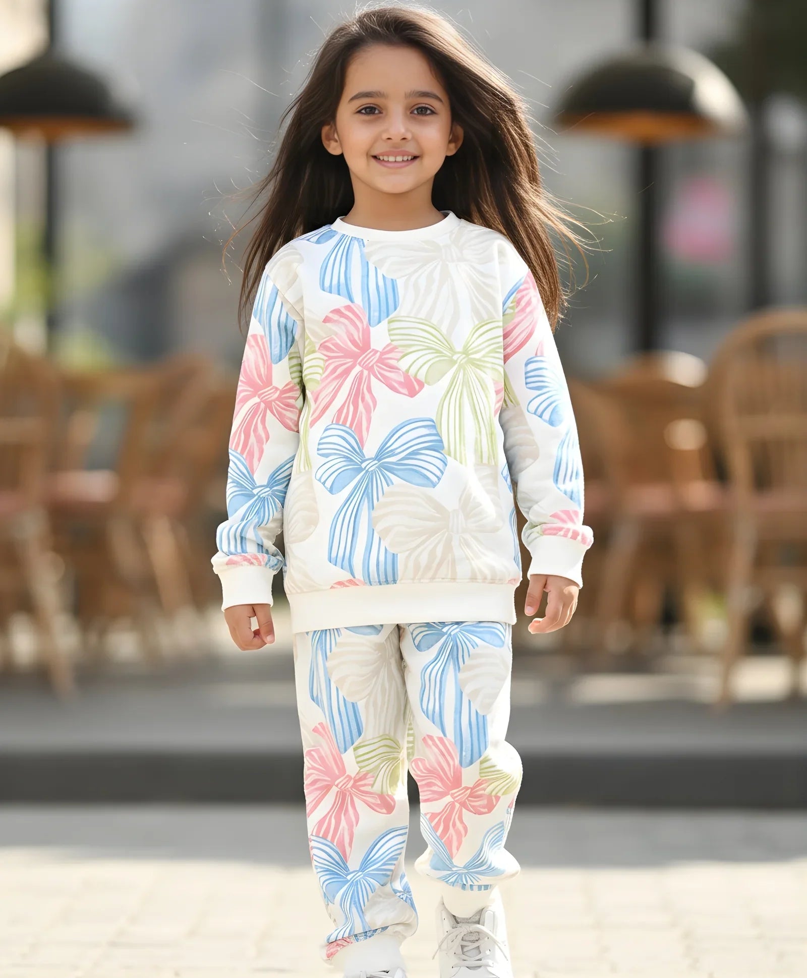 PAINTED BOW GIRLS FLEECE SWEATSHIRT JOGGER SET - WHITE