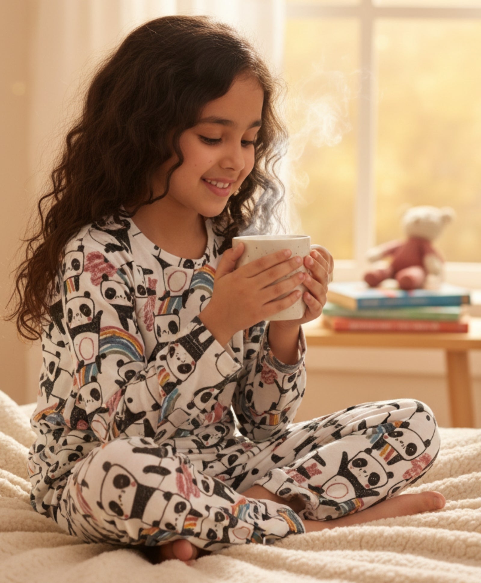 PANDA LONG SLEEVES GIRLS PYJAMA SET - WHITE
