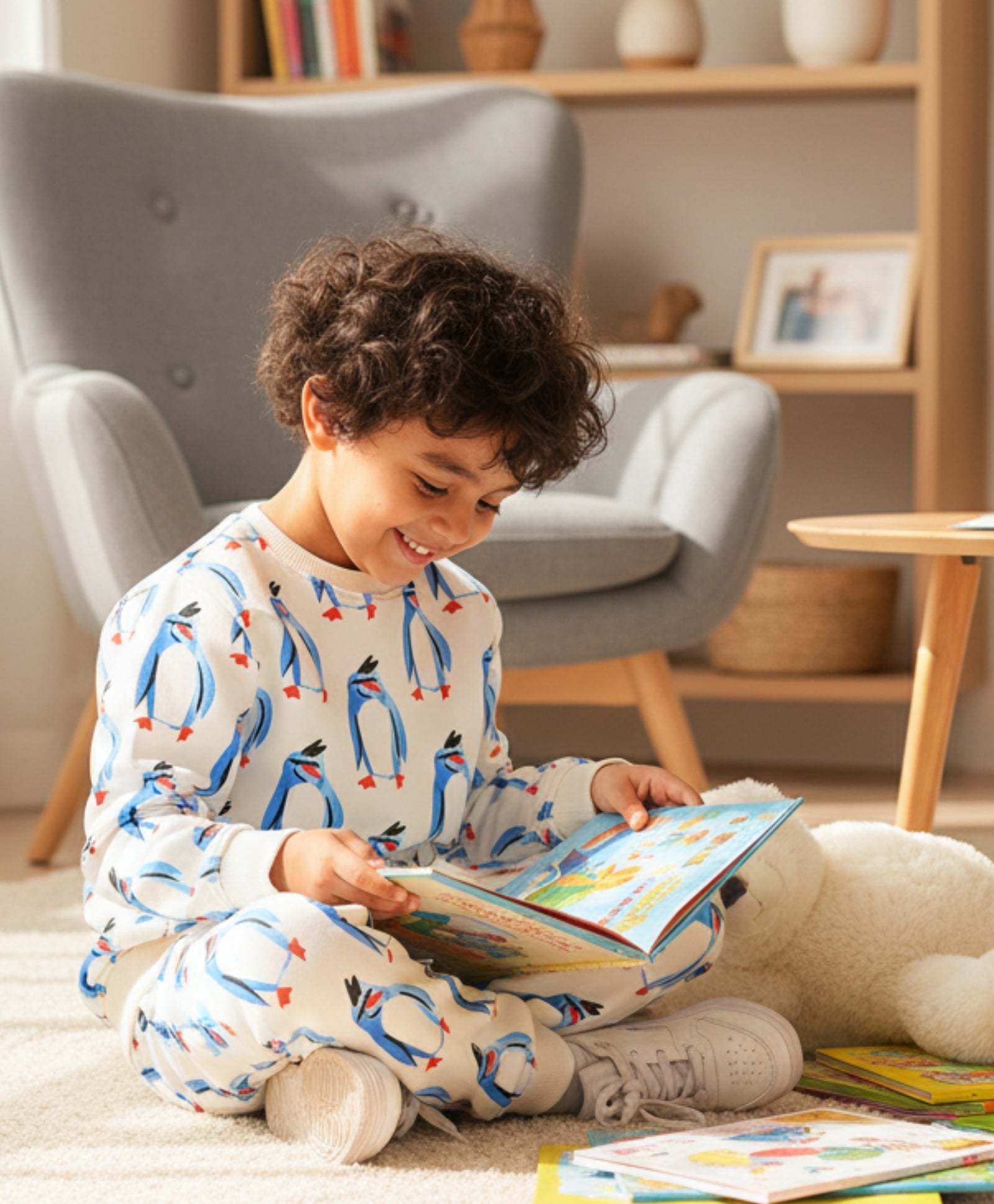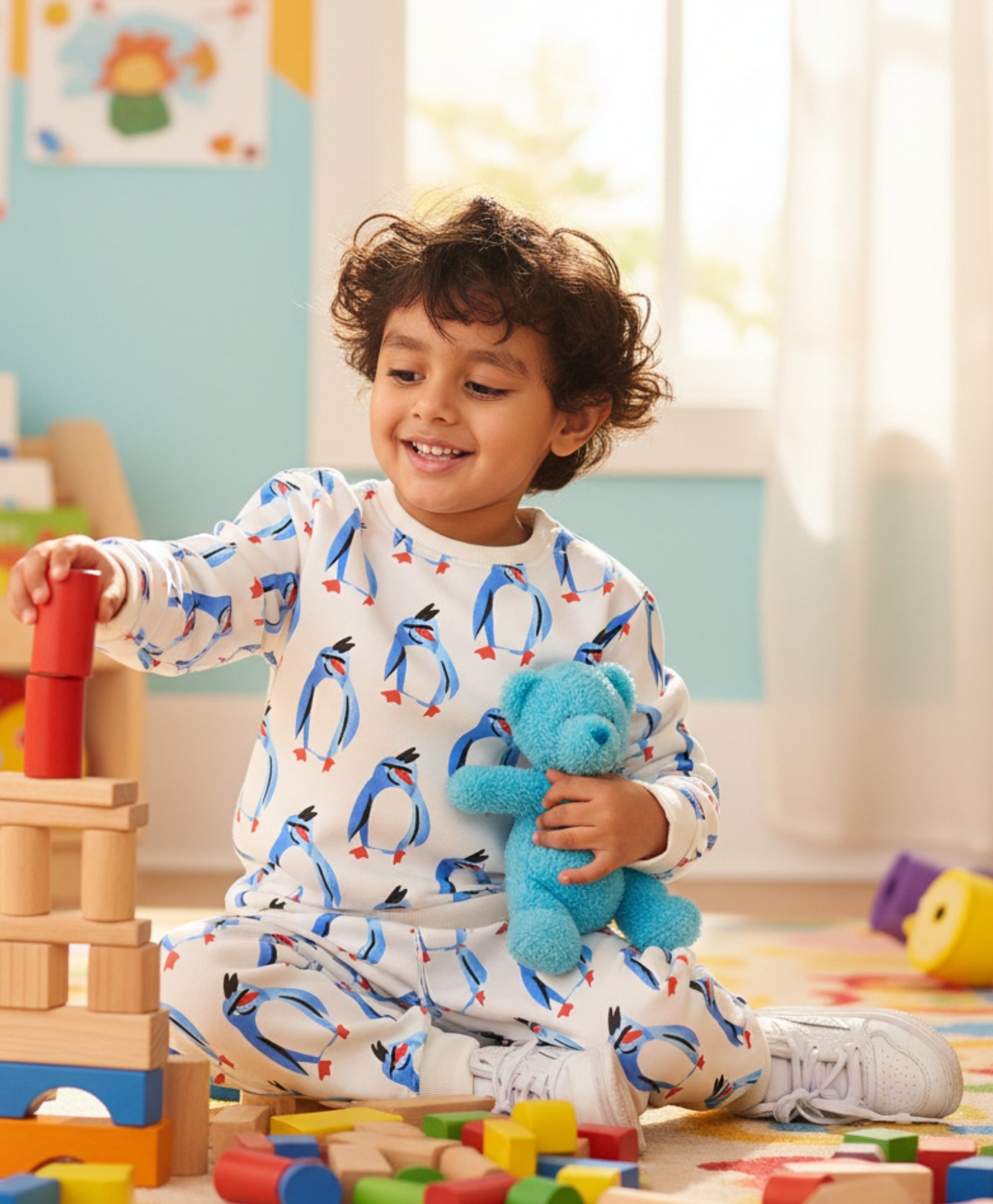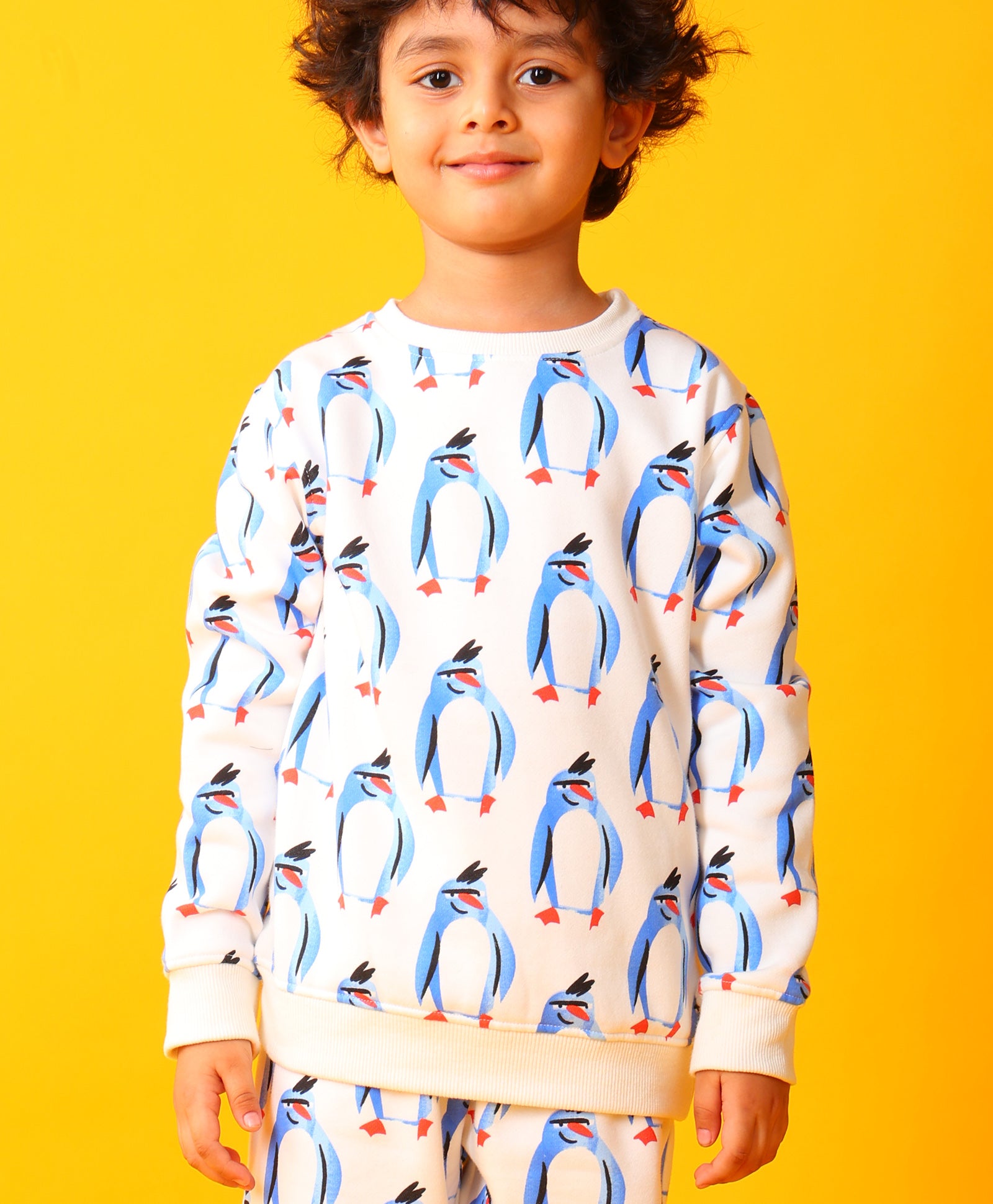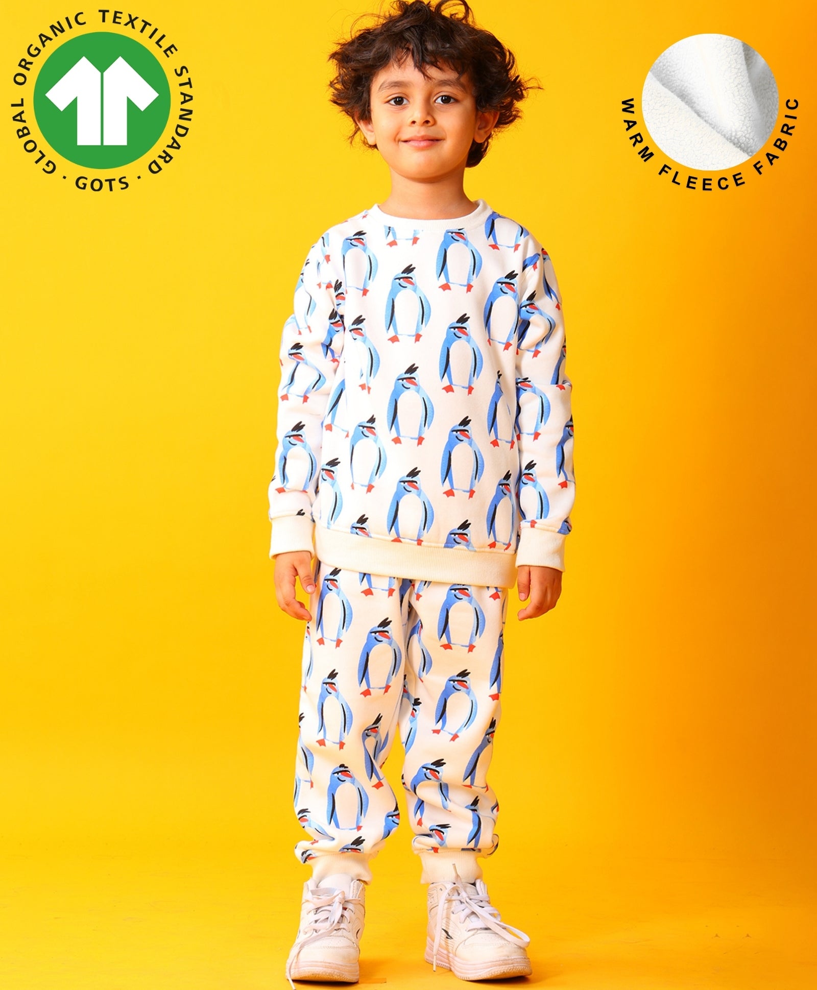 Keep your little one warm and playful with the Penguin Fleece Boys Sweatshirt Jogger Set in off-white. Made from soft fleece fabric, the sweatshirt features a cute penguin print, while the matching joggers ensure comfort and easy movement. Ideal for casual outings or indoor play, this set combines style, coziness, and durability for everyday wear.