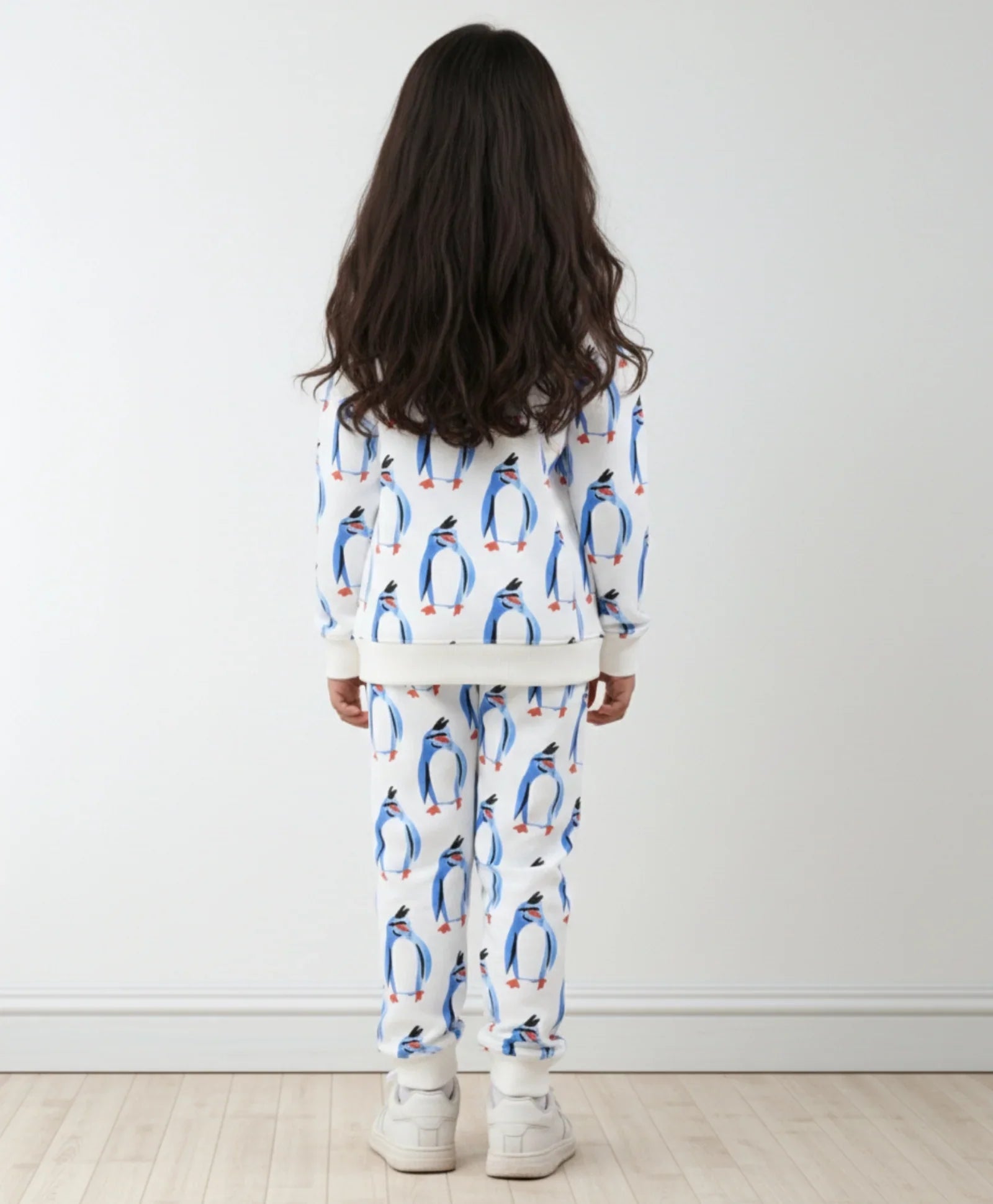 Keep her cozy and stylish with this Penguin Fleece Girls Sweatshirt Jogger Set in off-white. Made from soft, warm fleece, it features a playful penguin design on the sweatshirt and matching joggers for ultimate comfort. Perfect for casual outings or indoor fun, this set ensures warmth, durability, and adorable everyday style for little ones.