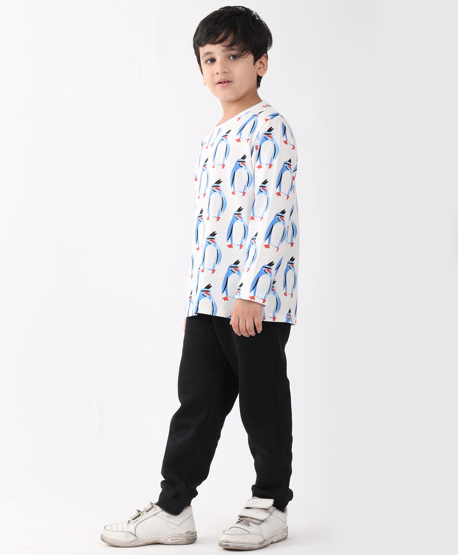Keep your little one warm and stylish with the Penguin Long Sleeve T-Shirt & Fleece Jogger Set. Made from soft fleece, the white and black set features a playful penguin print that kids will love. The cozy joggers provide comfort and freedom to move, making it perfect for playtime, casual outings, or relaxing at home.