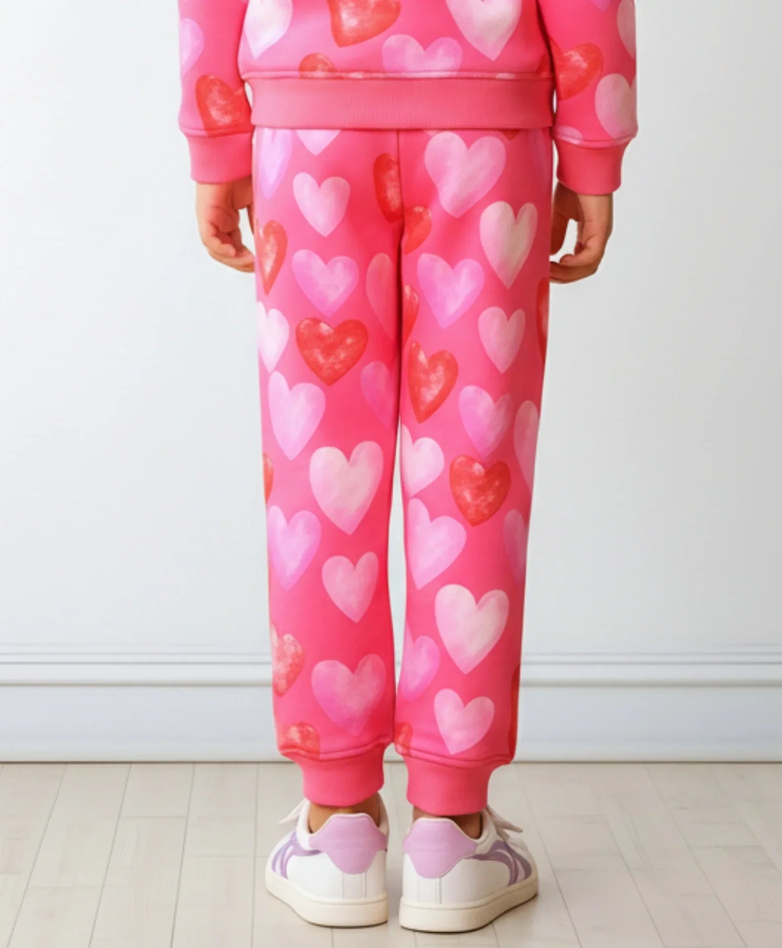 PINK HEARTS FLEECE GIRLS JOGGER - PINK