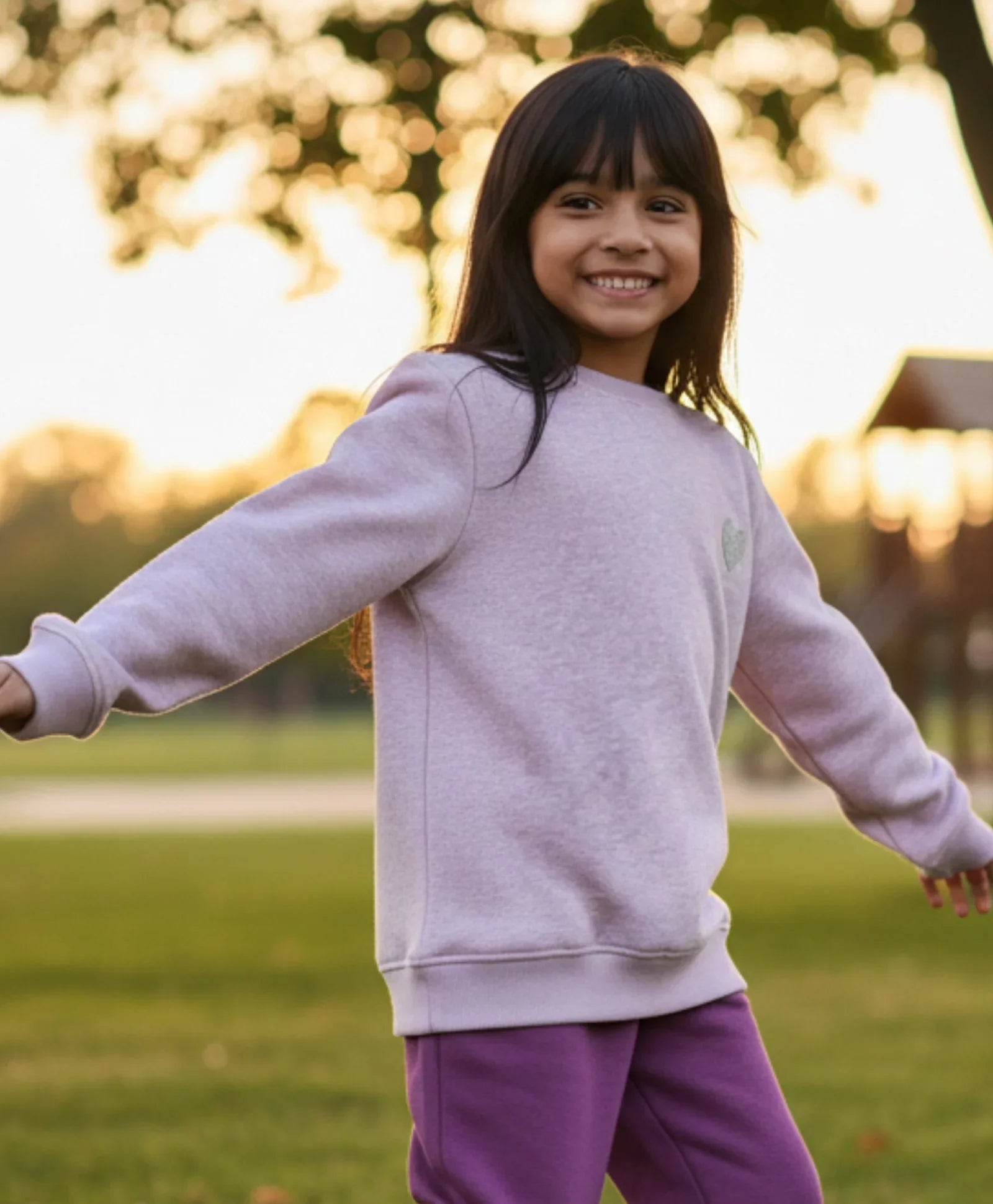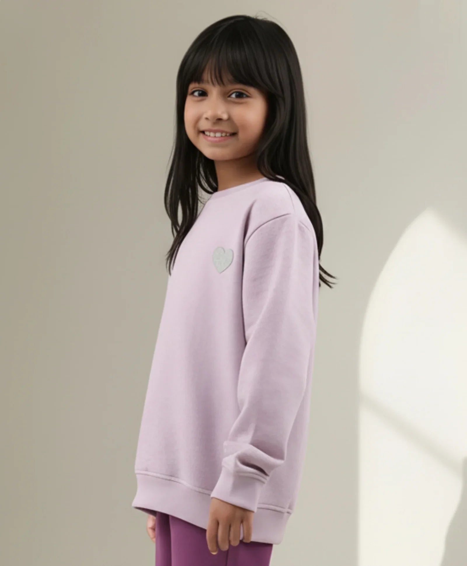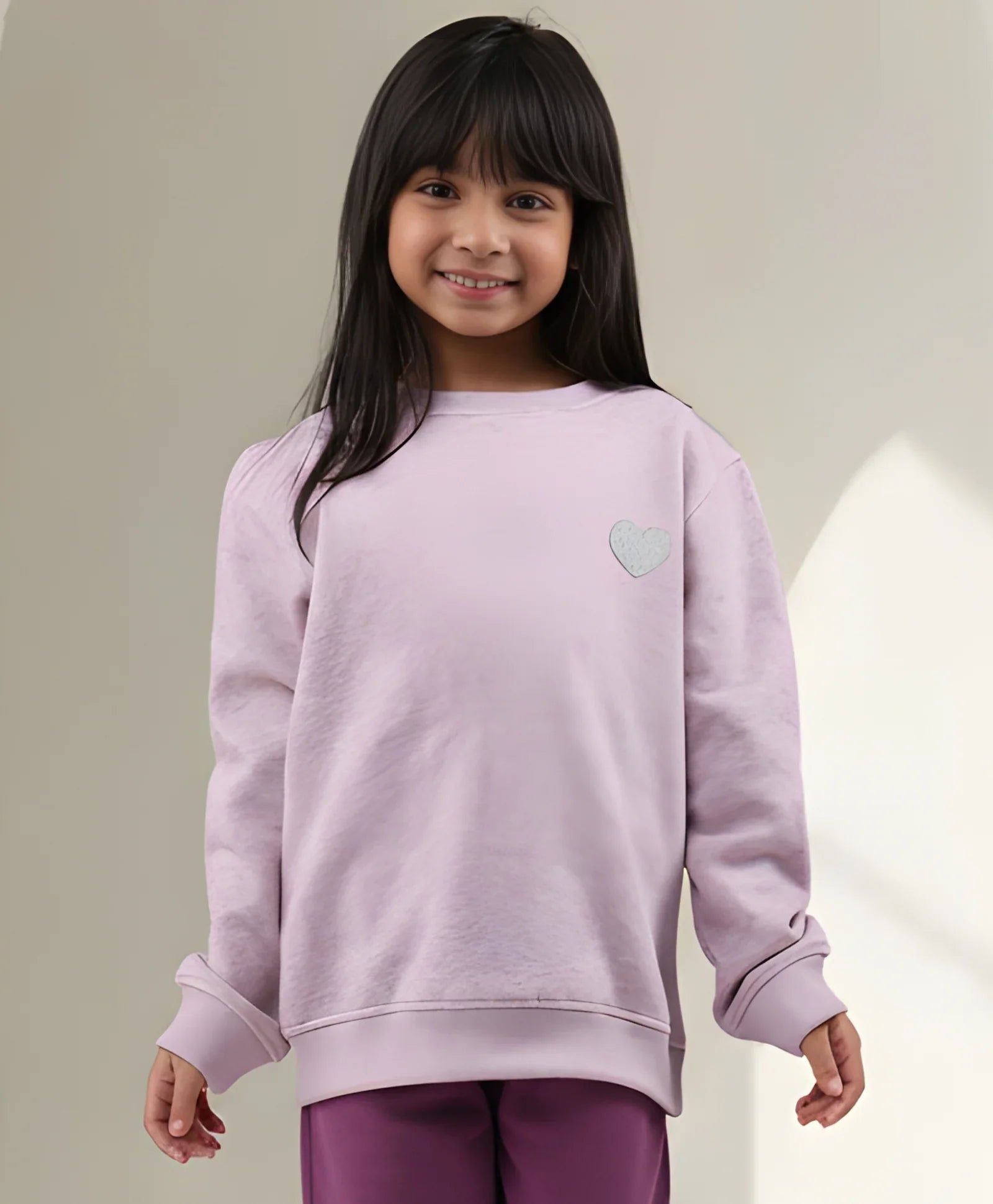 PURPLE MELANGE GIRLS FLEECE SWEATSHIRT - PURPLE
