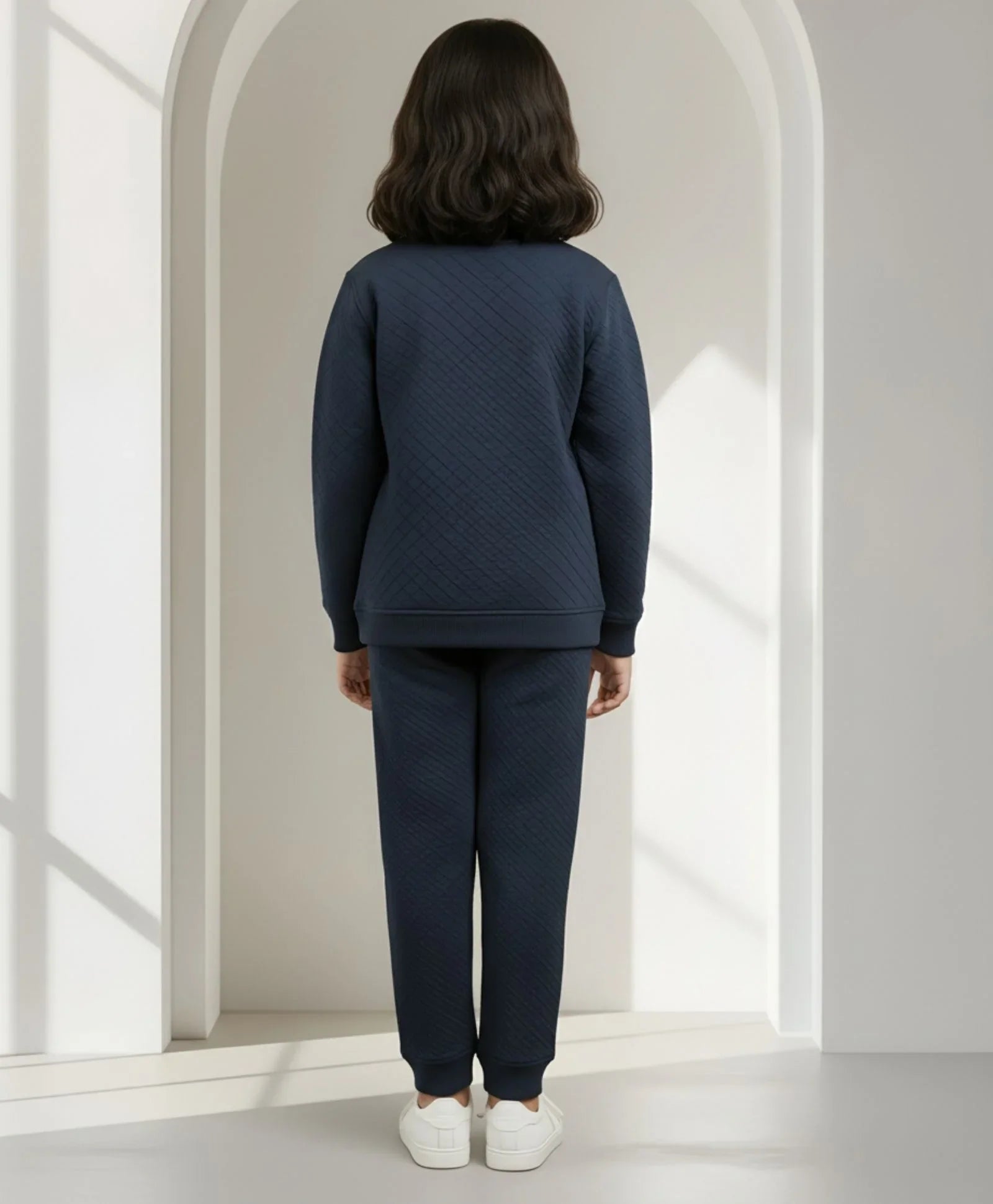 MINIMAL ESSENTIALS GIRLS FLEECE SWEATSHIRT JOGGER SET - NAVY