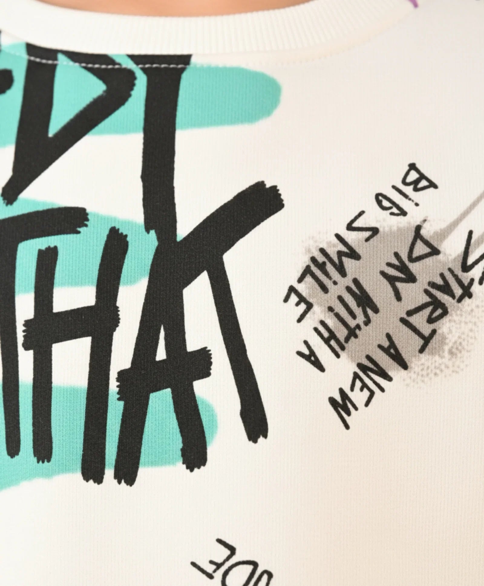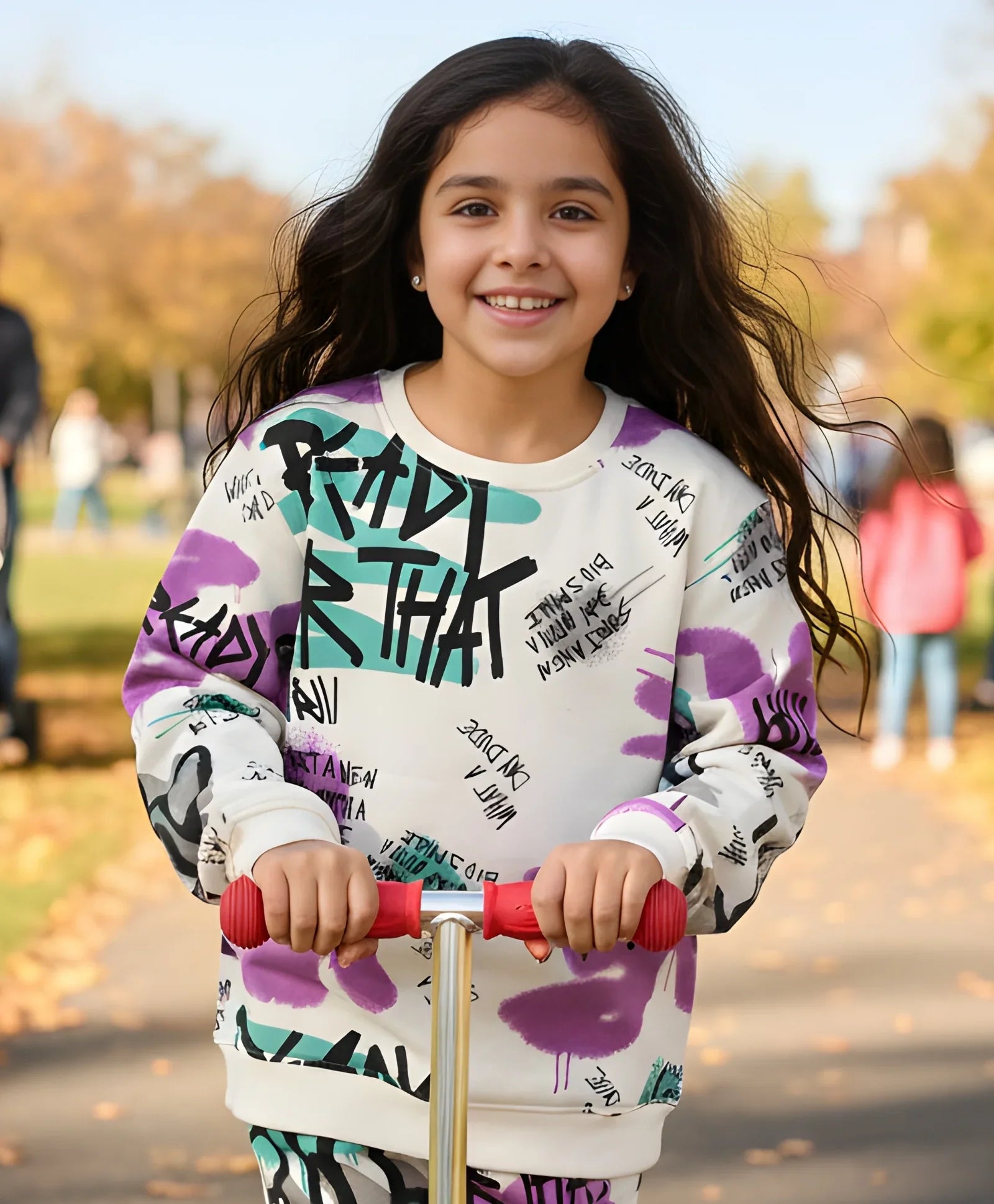 READY FOR THAT ROUND NECK FLEECE GIRLS SWEATSHIRT - WHITE