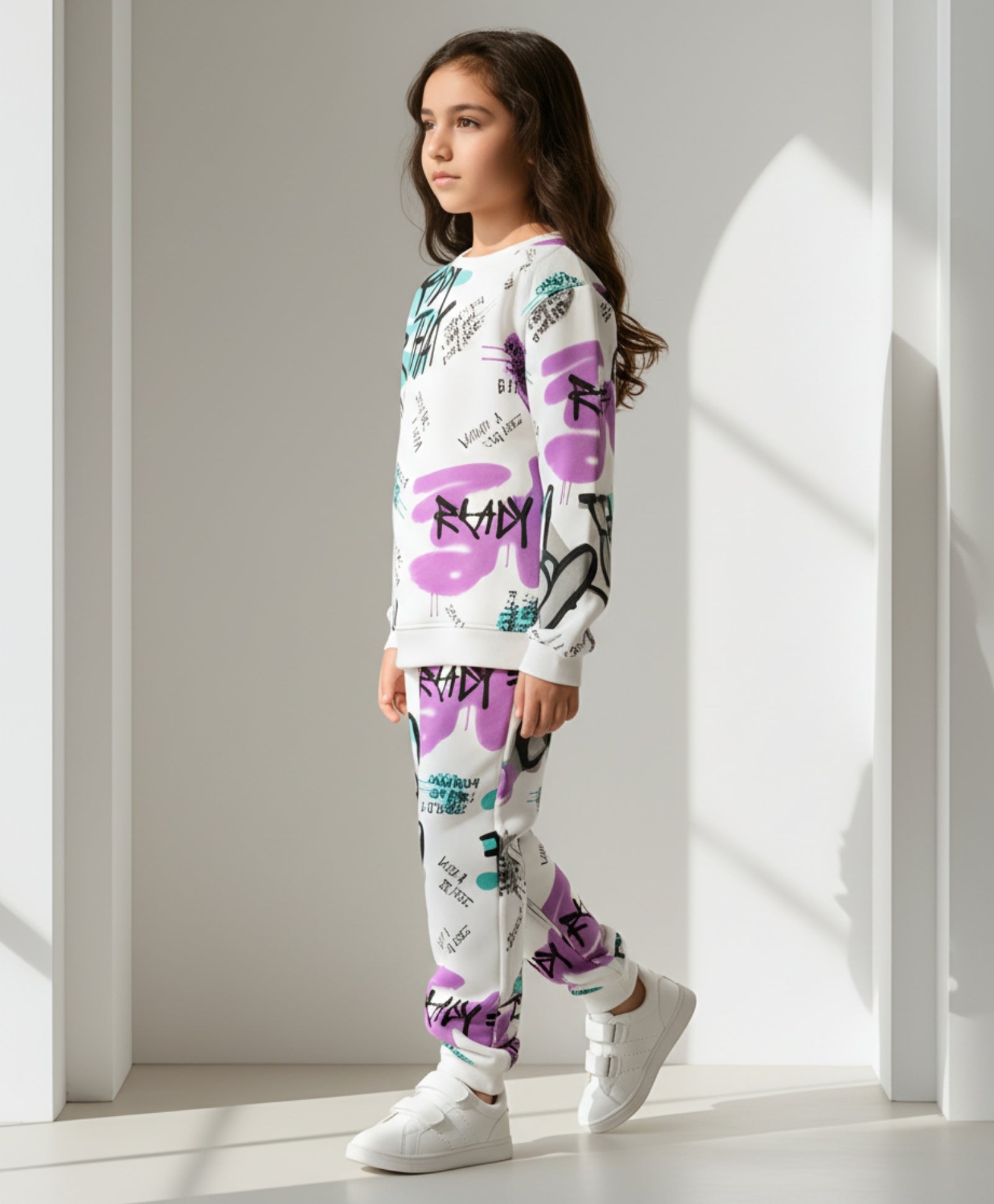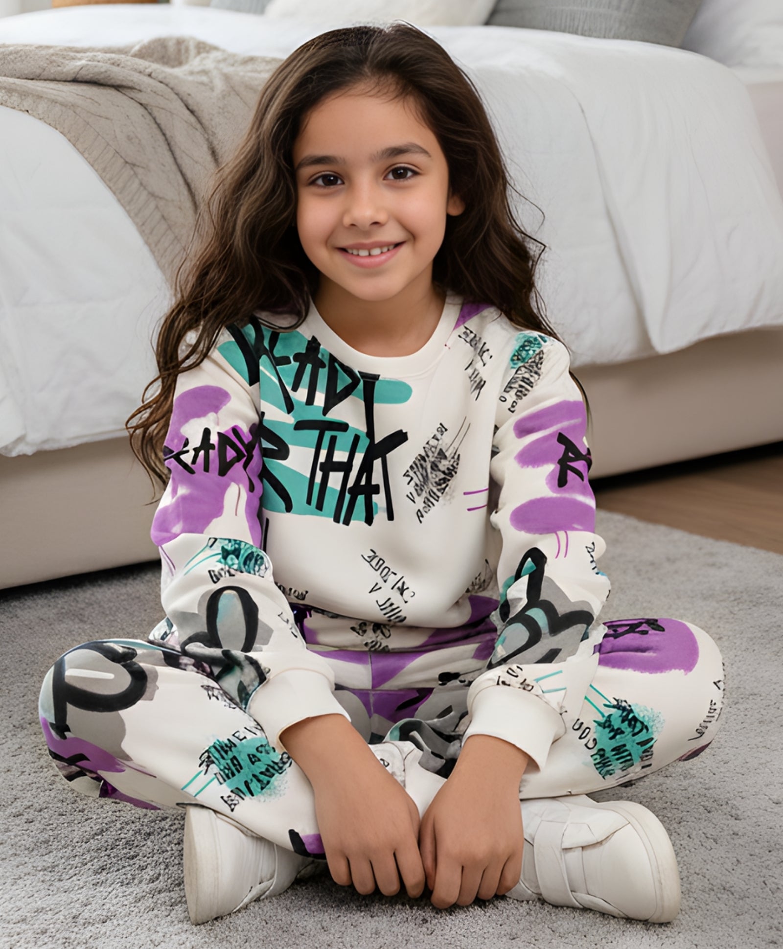 Prepare her for any adventure with this white round neck fleece sweatshirt and jogger set. The classic design and cozy fleece offer both style and warmth. Ideal for school days or weekend play, this set ensures she stays comfortable and fashionable through all her activities