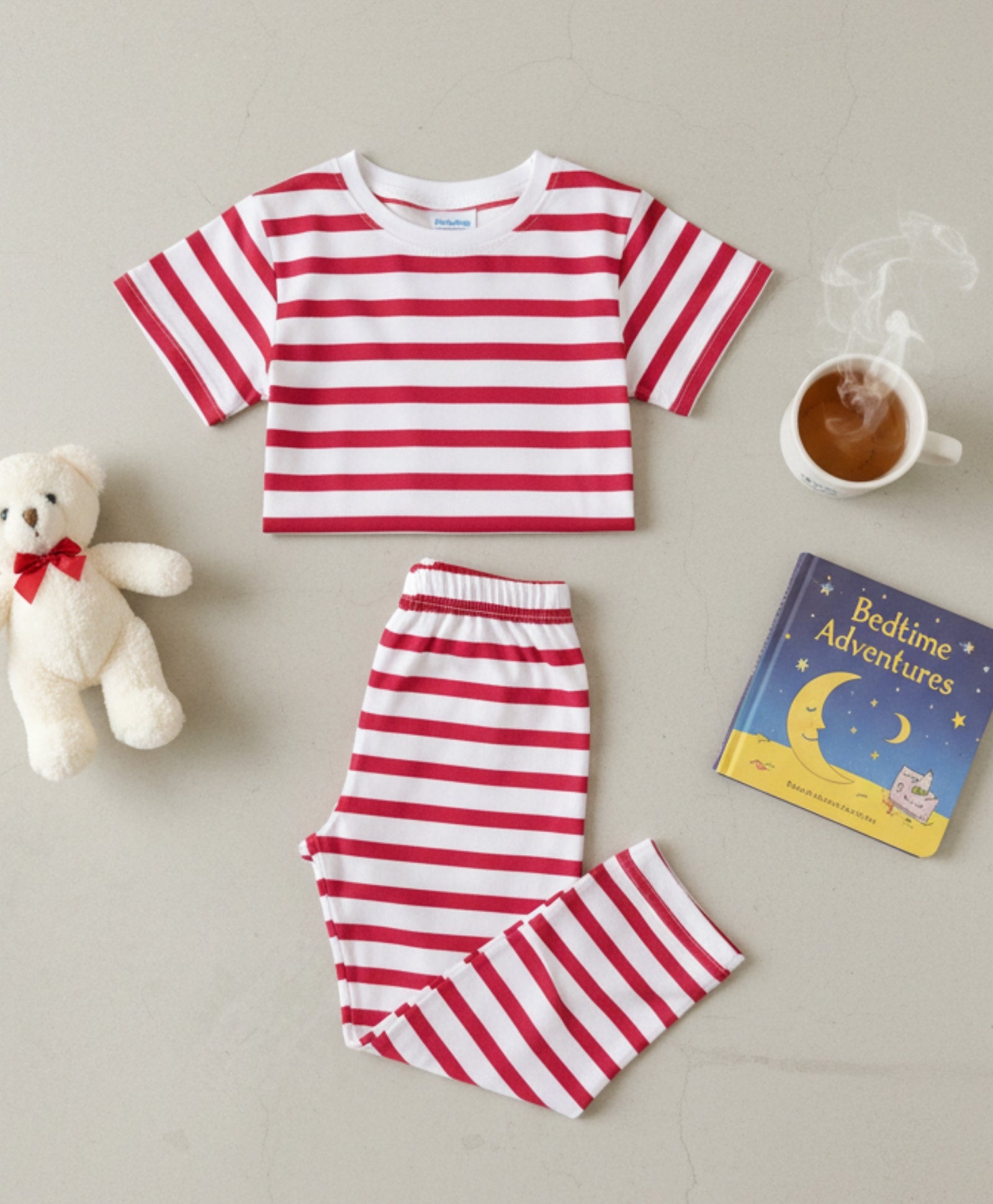 Brighten up bedtime with these bold red and white stripes! This vibrant short-sleeve set is designed for ultimate comfort and playful dreams. Made from super-soft, lightweight fabric, it keeps kids cool and cozy all night long. Perfect for matching sets, holiday fun, or just extra-comfy lounging!