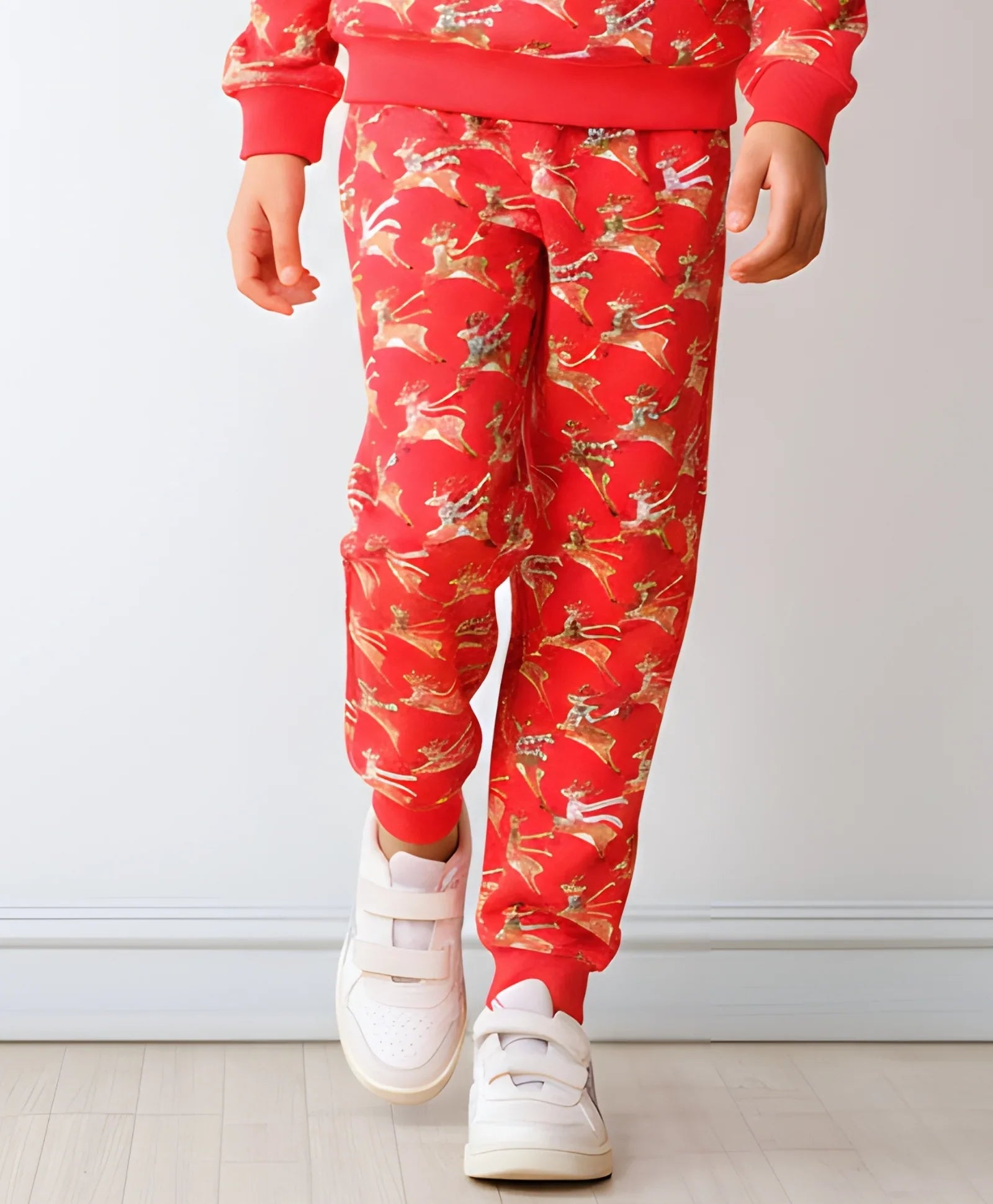REINDEER PRINT FLEECE GIRLS JOGGER - RED
