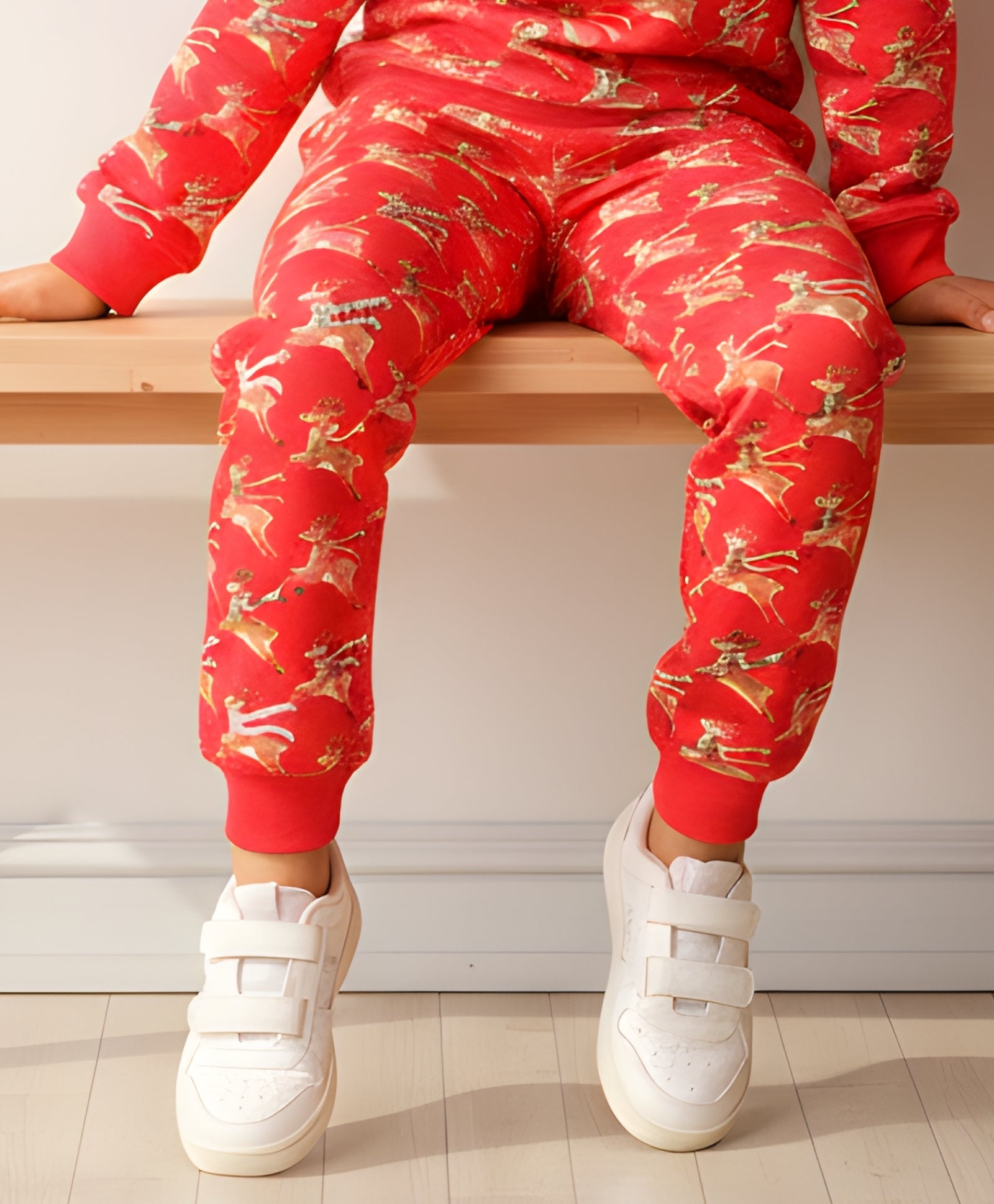 Ready for holiday fun, the REINDEER PRINT FLEECE BOYS JOGGER - RED brings festive cheer! These vibrant red joggers feature a jolly, ALL OVER PRINTED pattern of reindeer ready to fly. Crafted from warm FLEECE, they offer superb comfort for all Christmas adventures and cozy evenings by the fire.