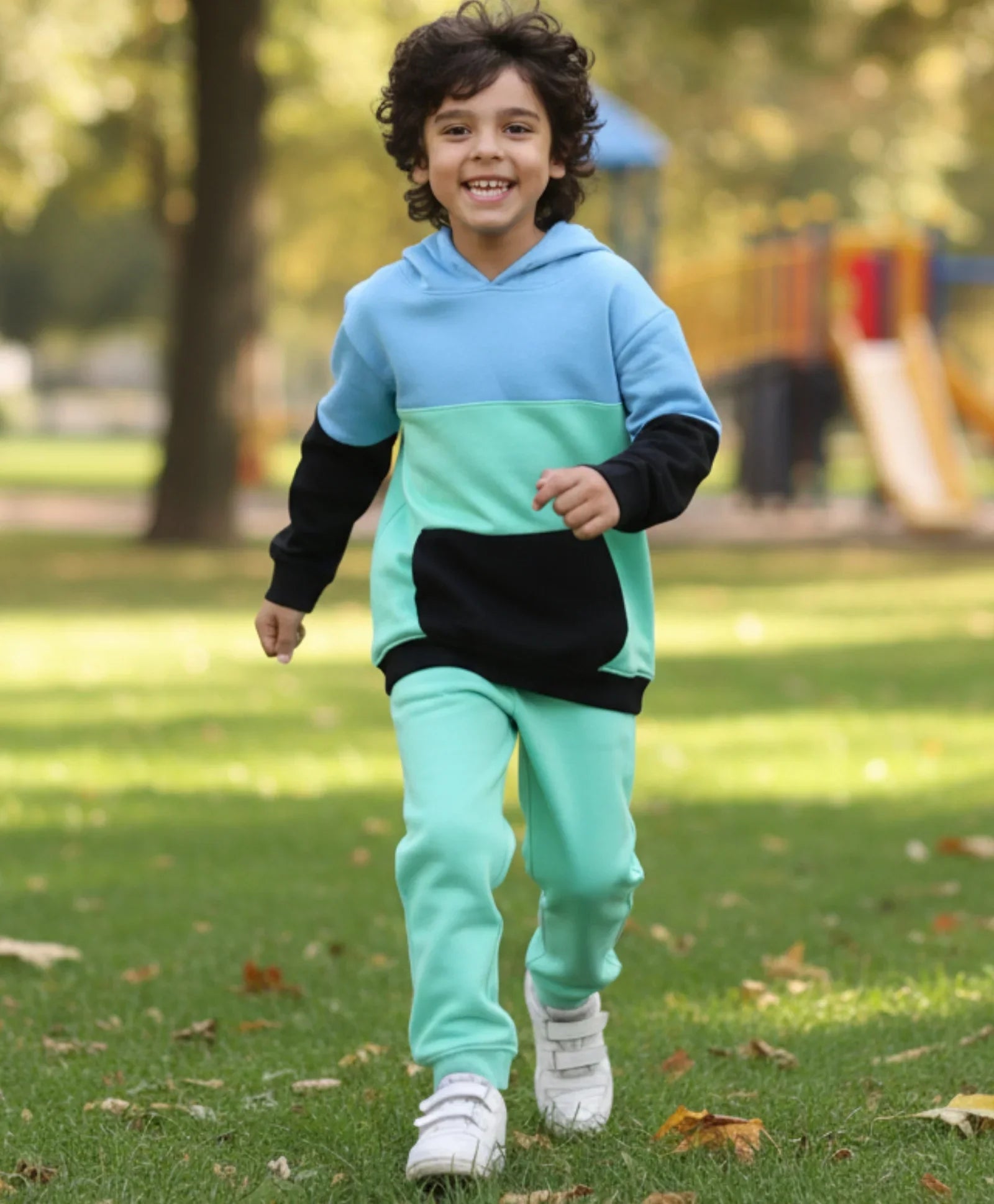 SEAGREEN BLUE BLACK BOYS HOODIE JOGGER SET - BLUE/SEA GREEN