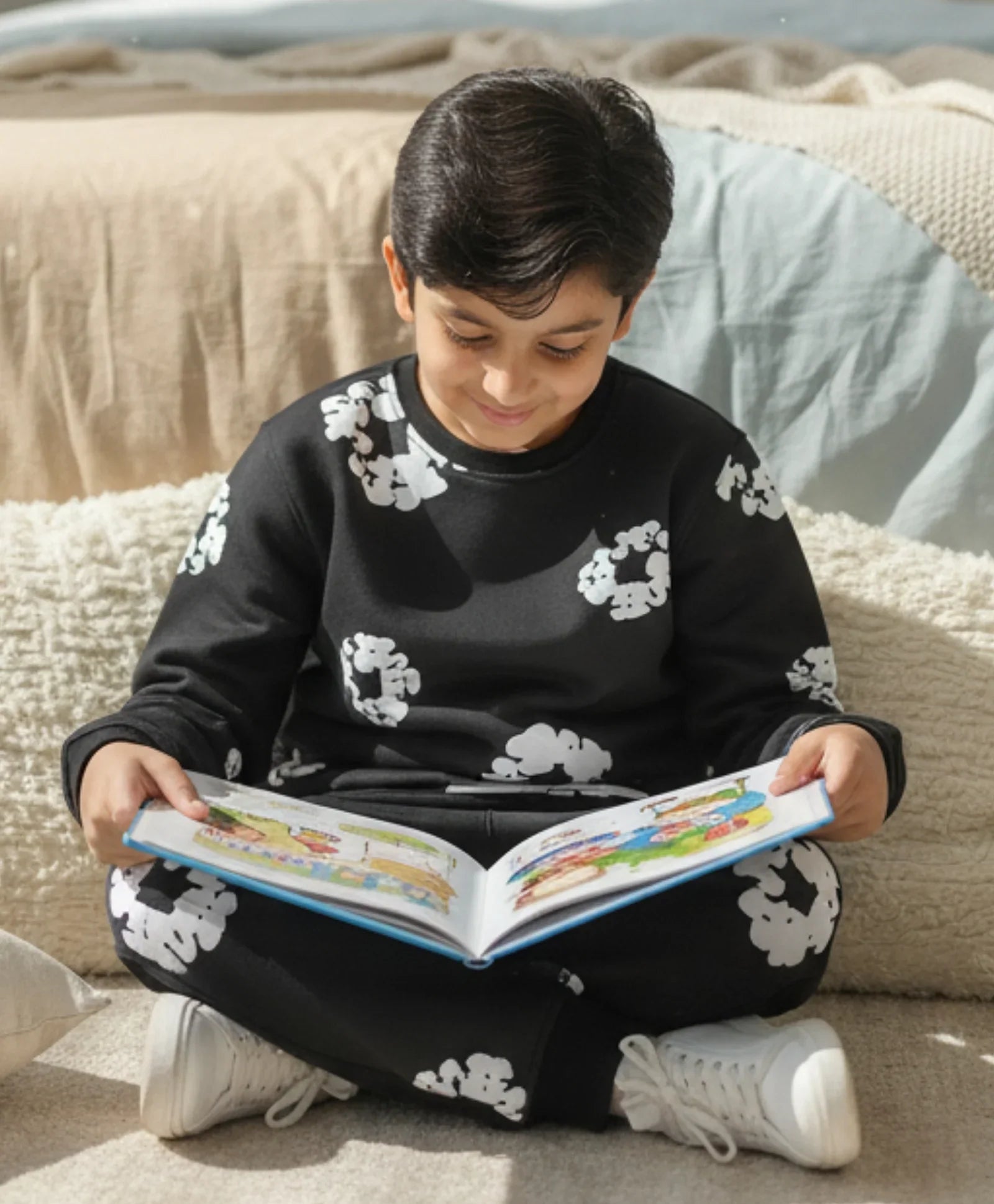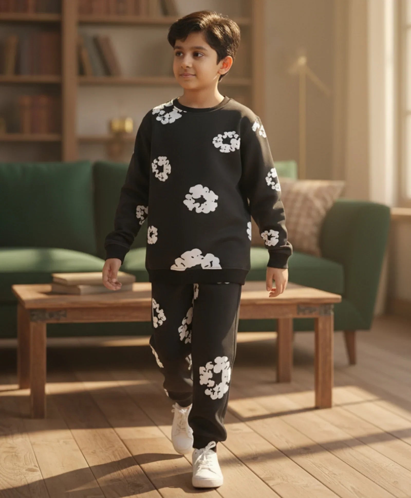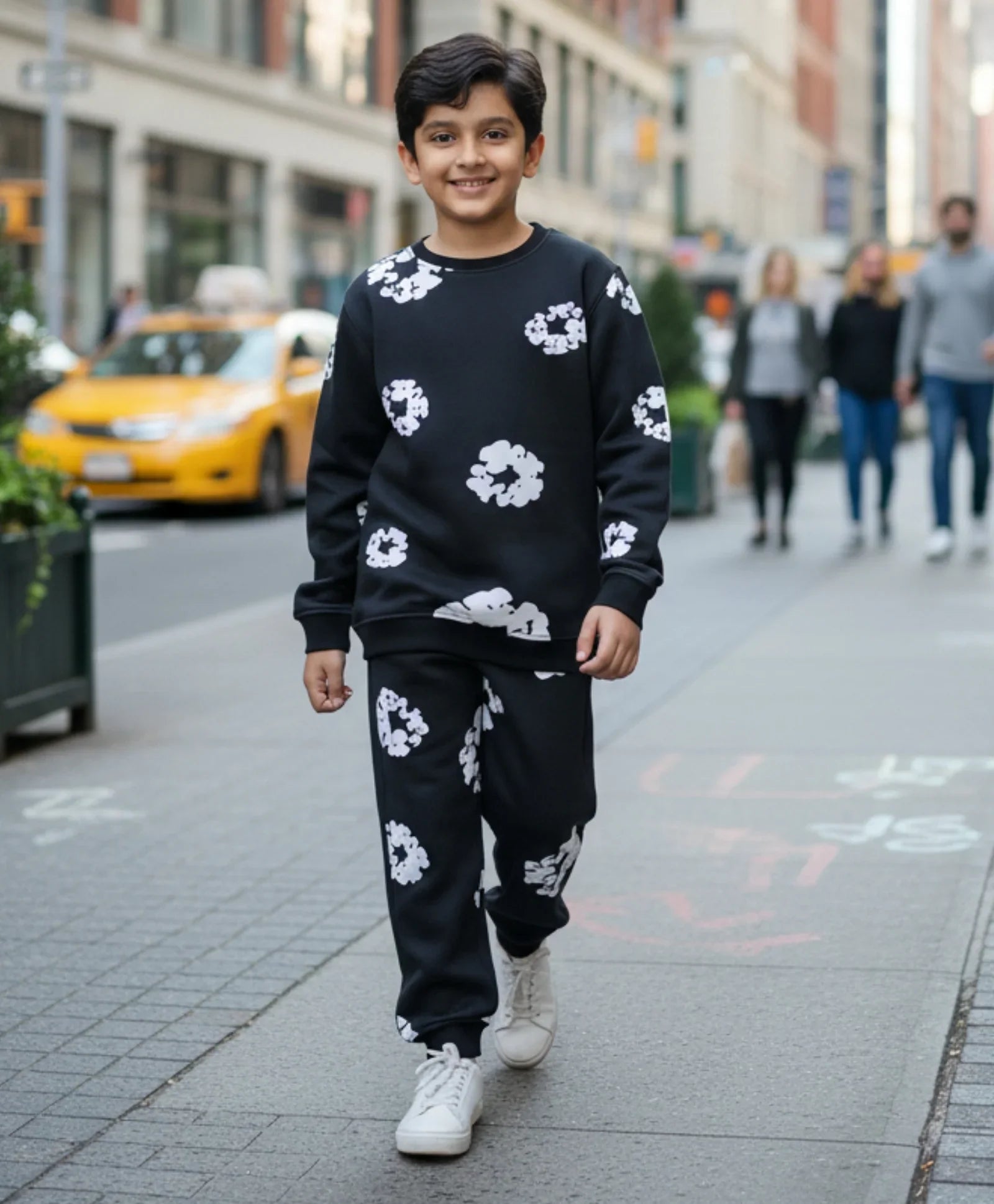 POP BLACK & WHITE BOYS FLEECE SWEATSHIRT JOGGER WINTER SET - BLACK