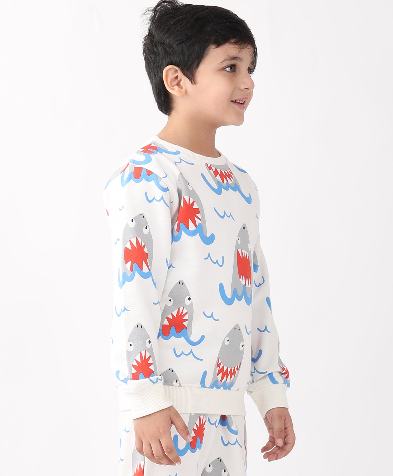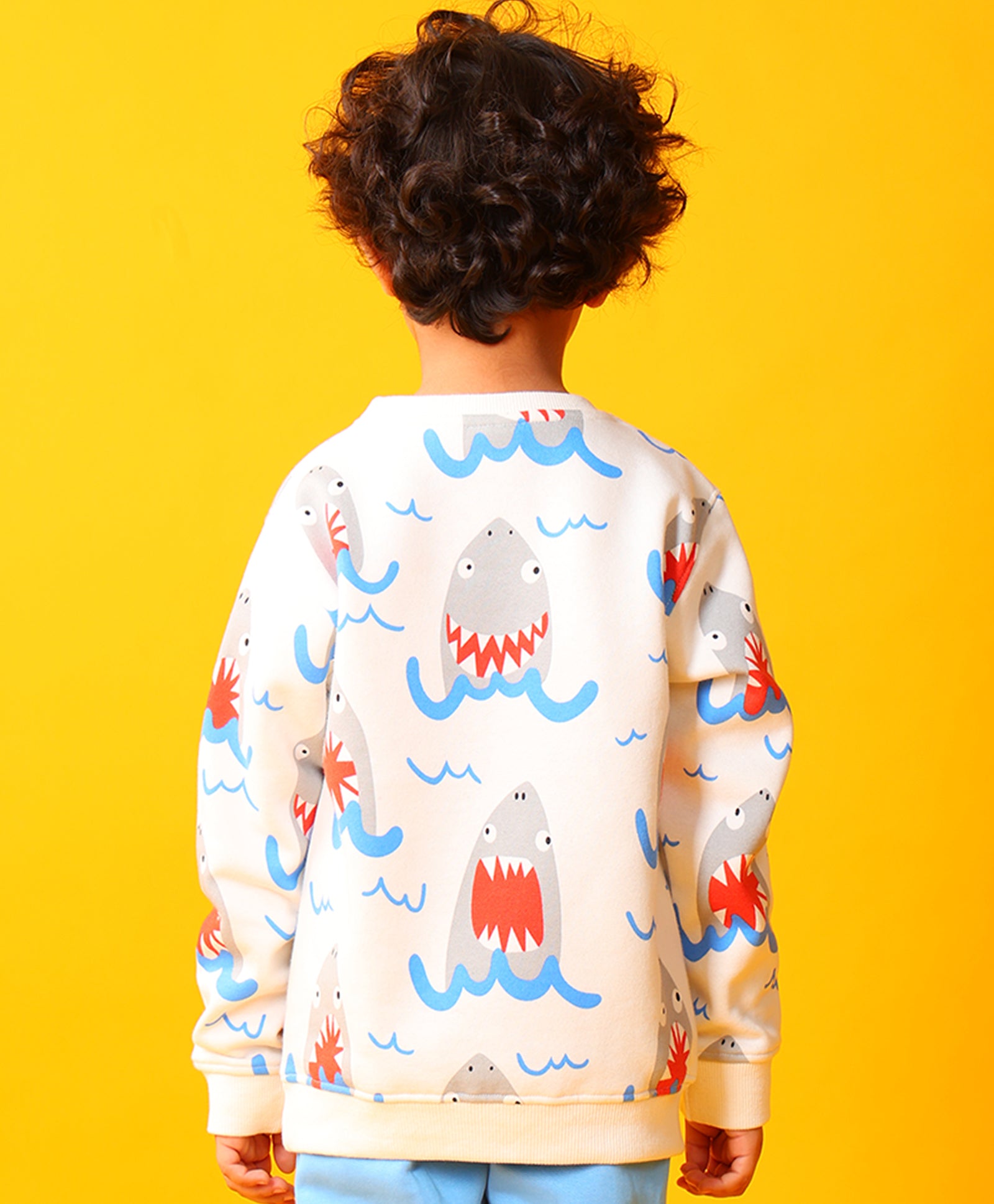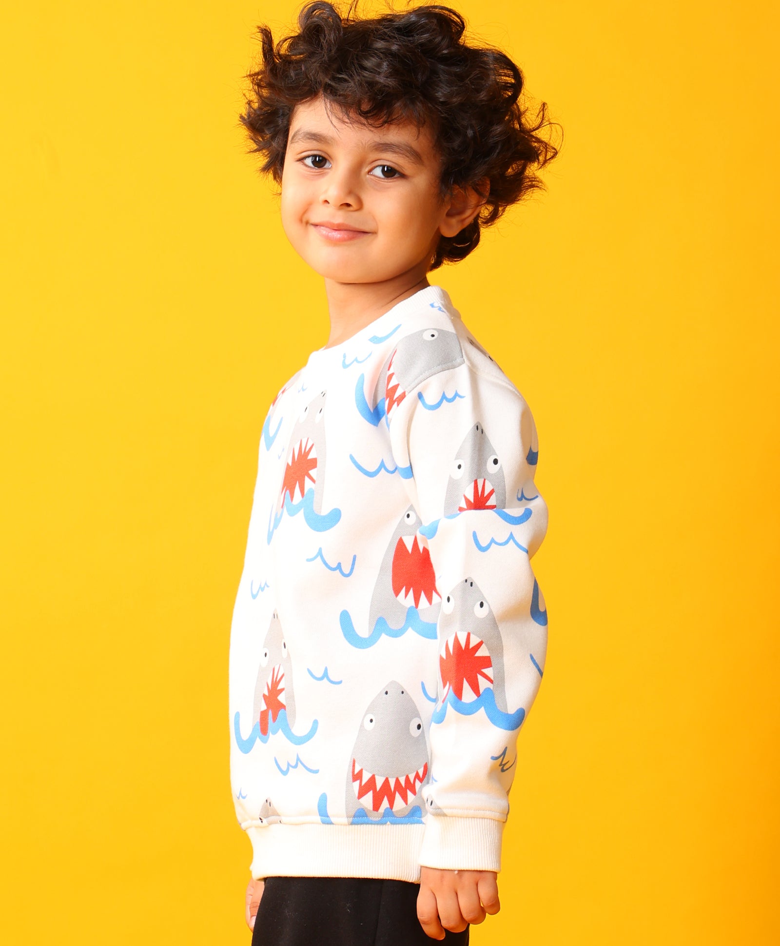 SLEEPY SHARK BOYS FLEECE SWEATSHIRT - OFF WHITE
