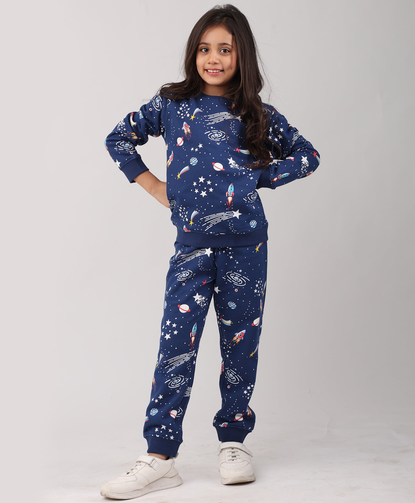 SOLAR DREAMS GIRLS FLEECE SWEATSHIRT JOGGER SET - BLUE