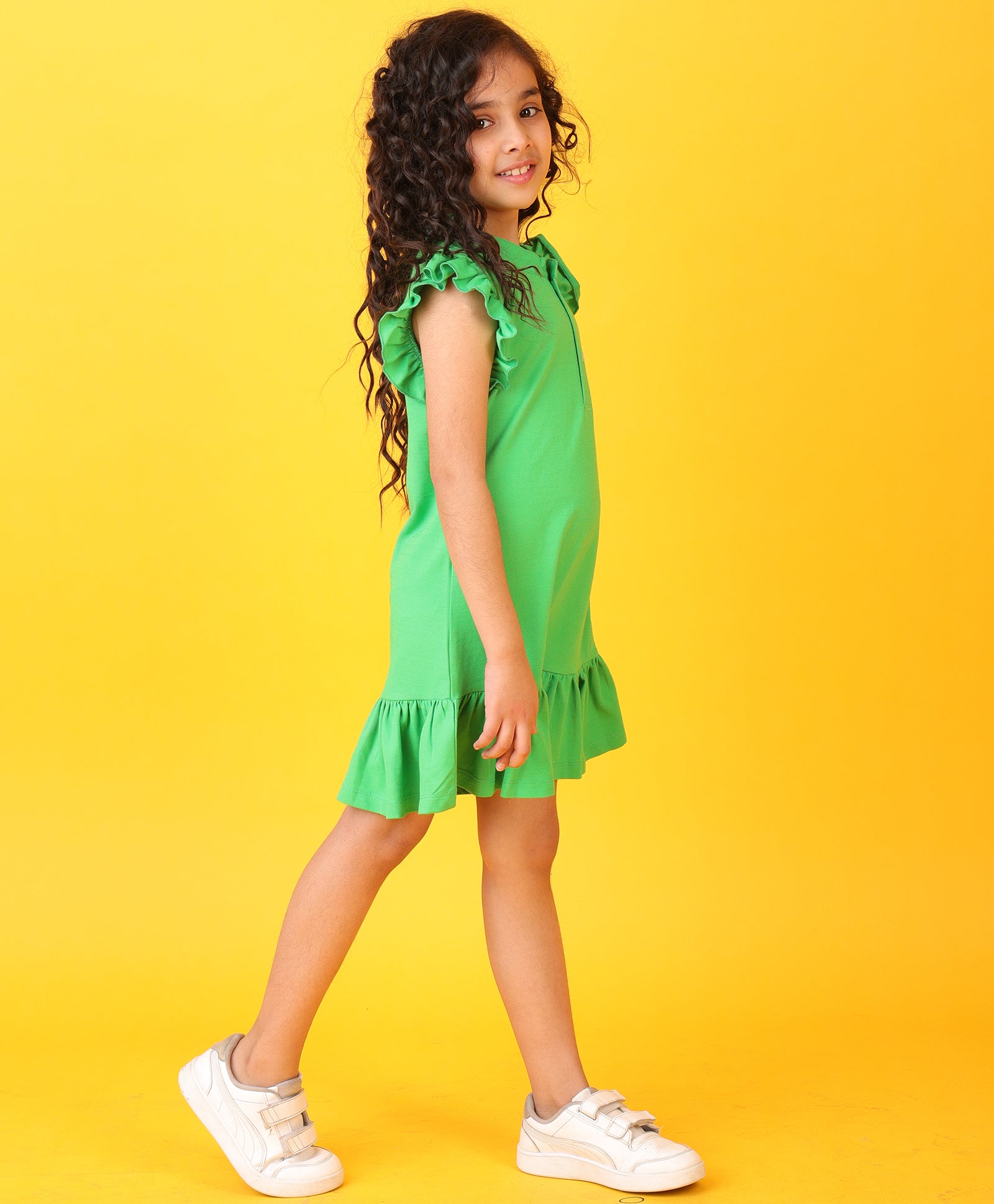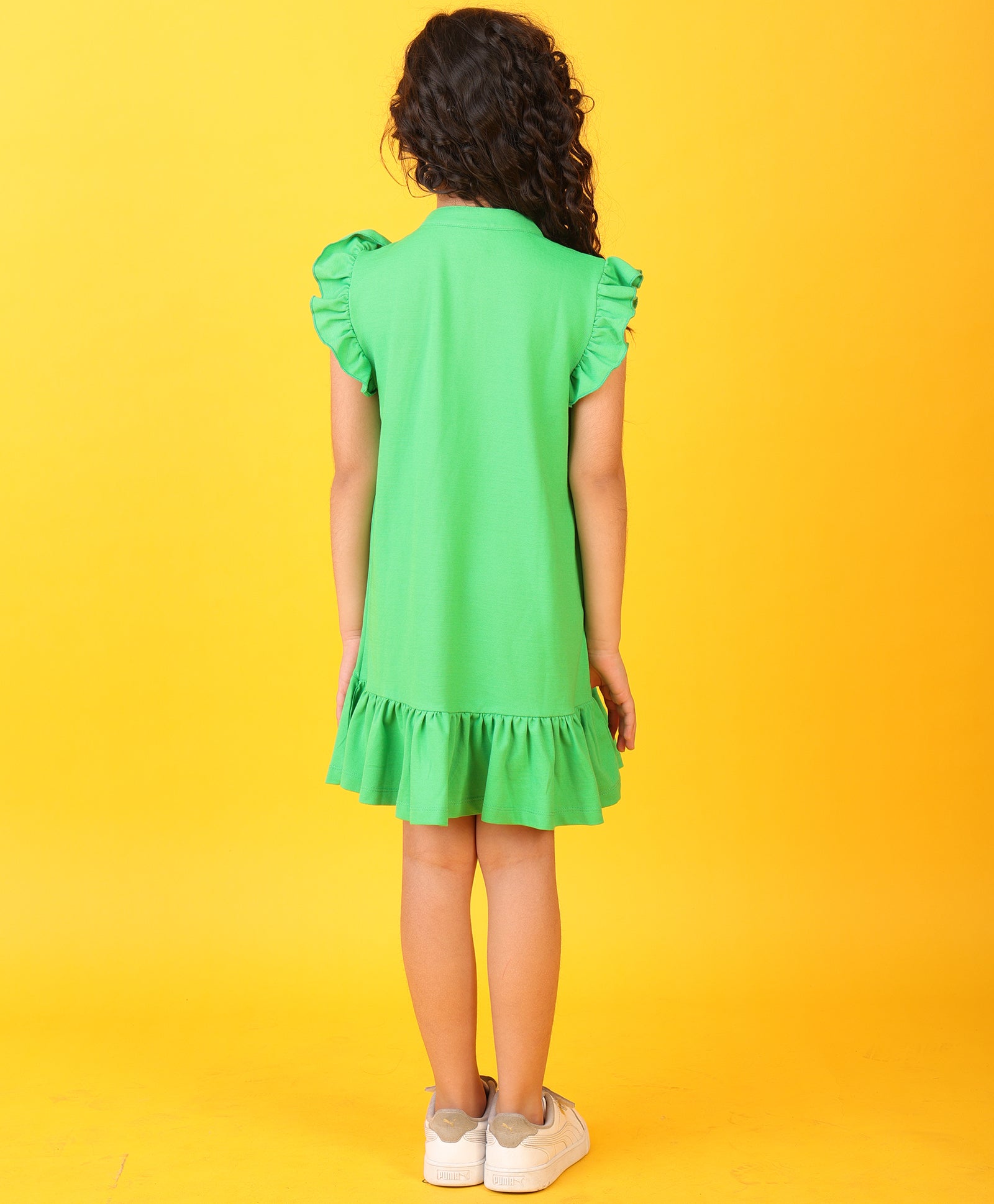 Let your little girl sparkle in this cute stylish dress. Cotton rich , frill sleeves, gathered seam for added width. Perfect for a summer party. Gentle Hand wash inside out.