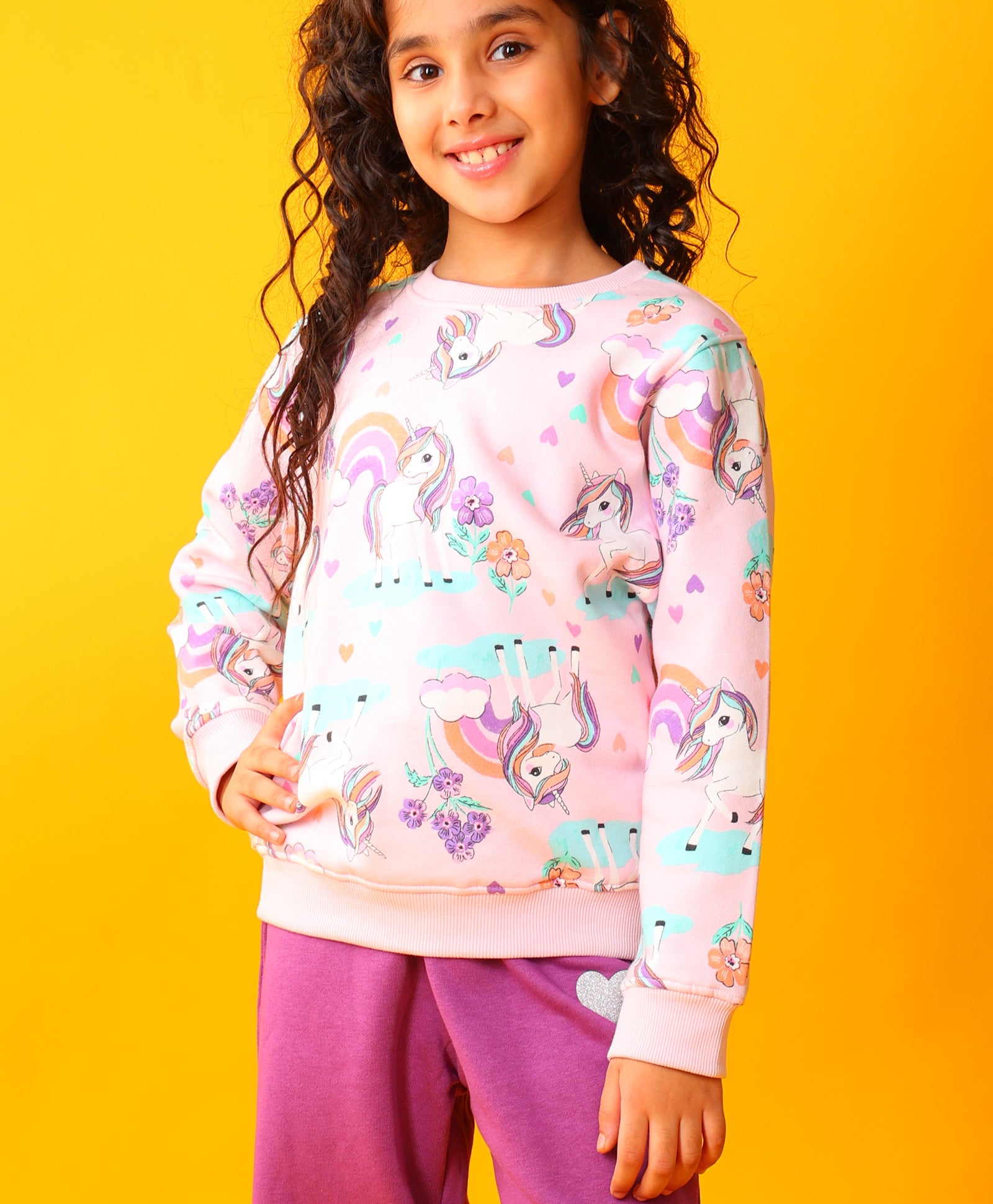 UNICORN HEART PRETTY PINK FLEECE SWEATSHIRT - PINK