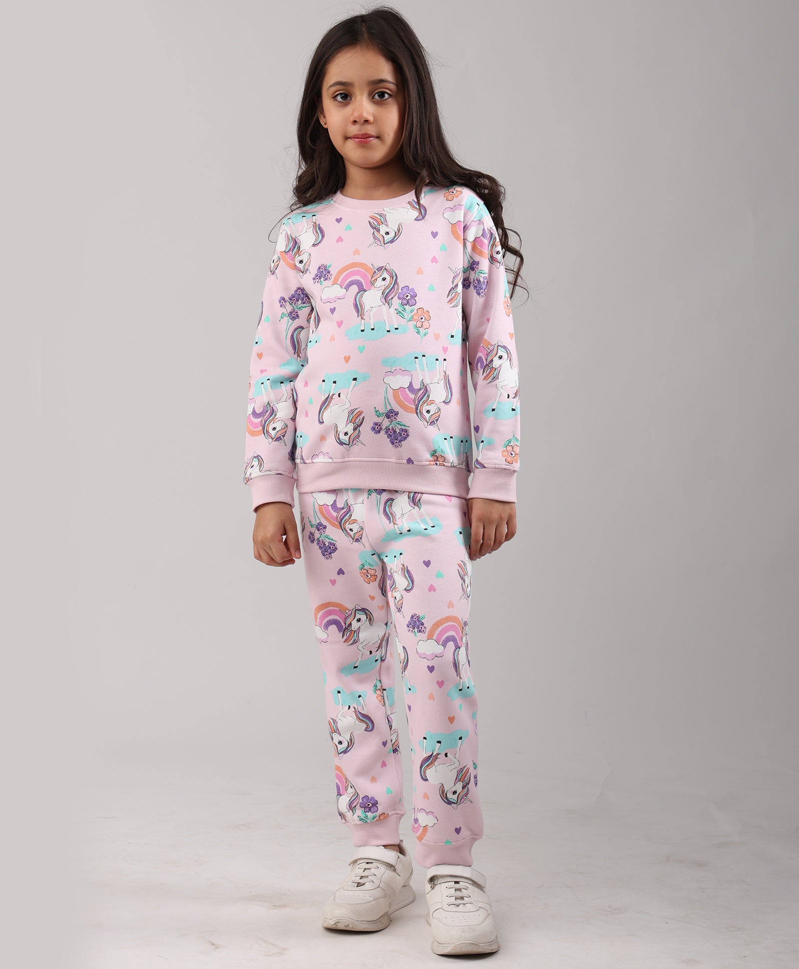 UNICORN HEART GIRLS FLEECE SWEATSHIRT JOGGER SET - PINK