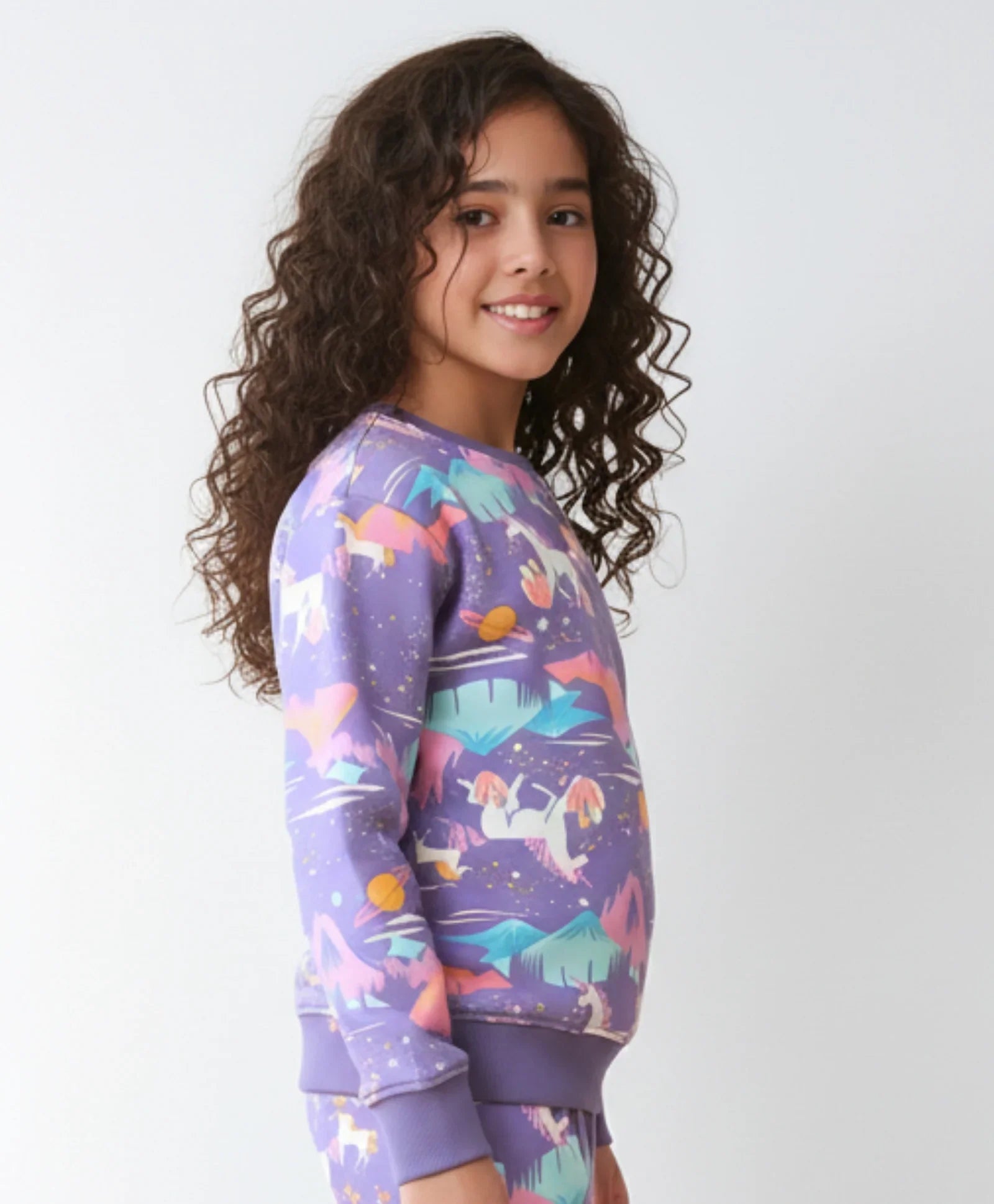 UNICORN PLANET GIRLS FLEECE SWEATSHIRT - PURPLE