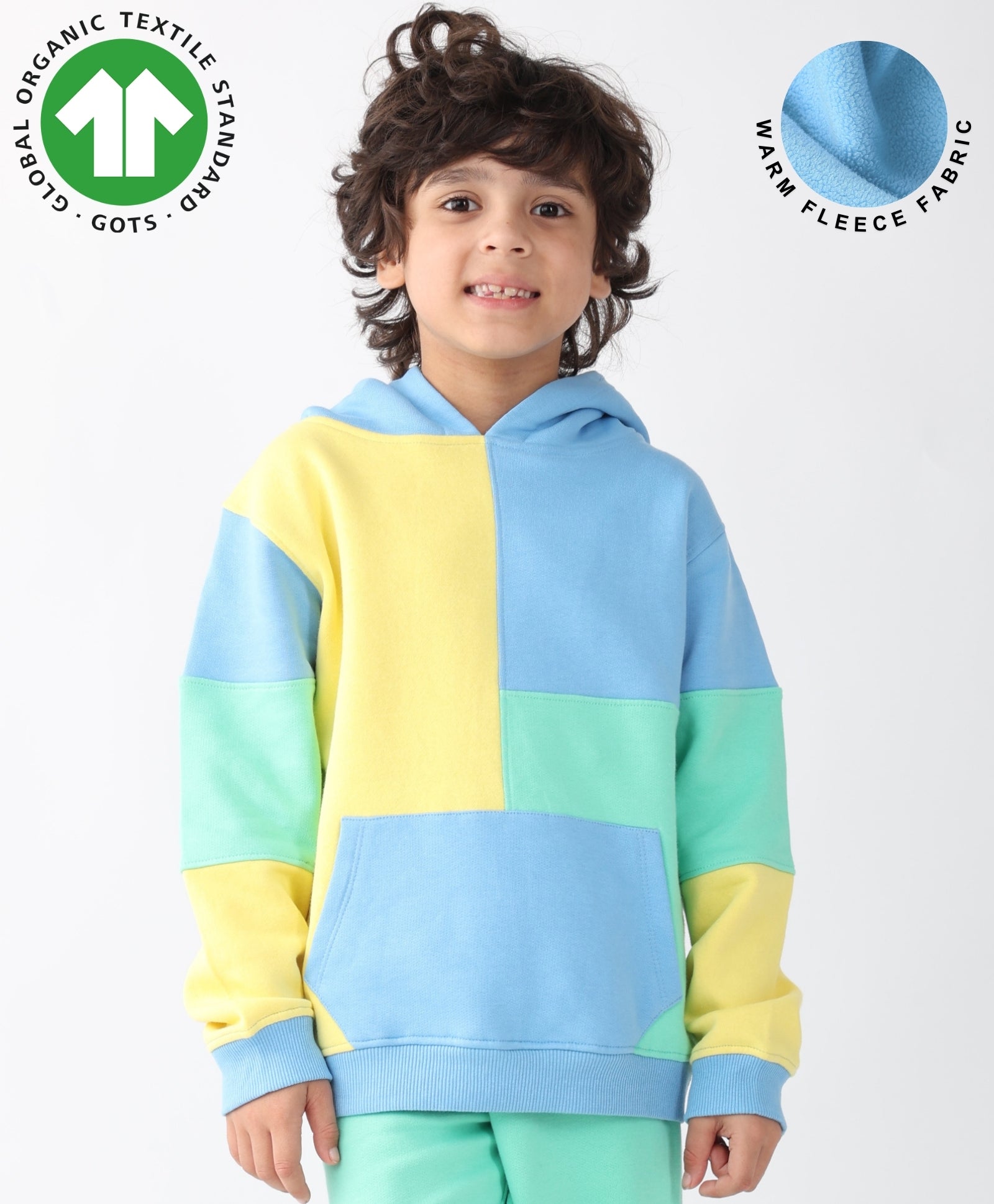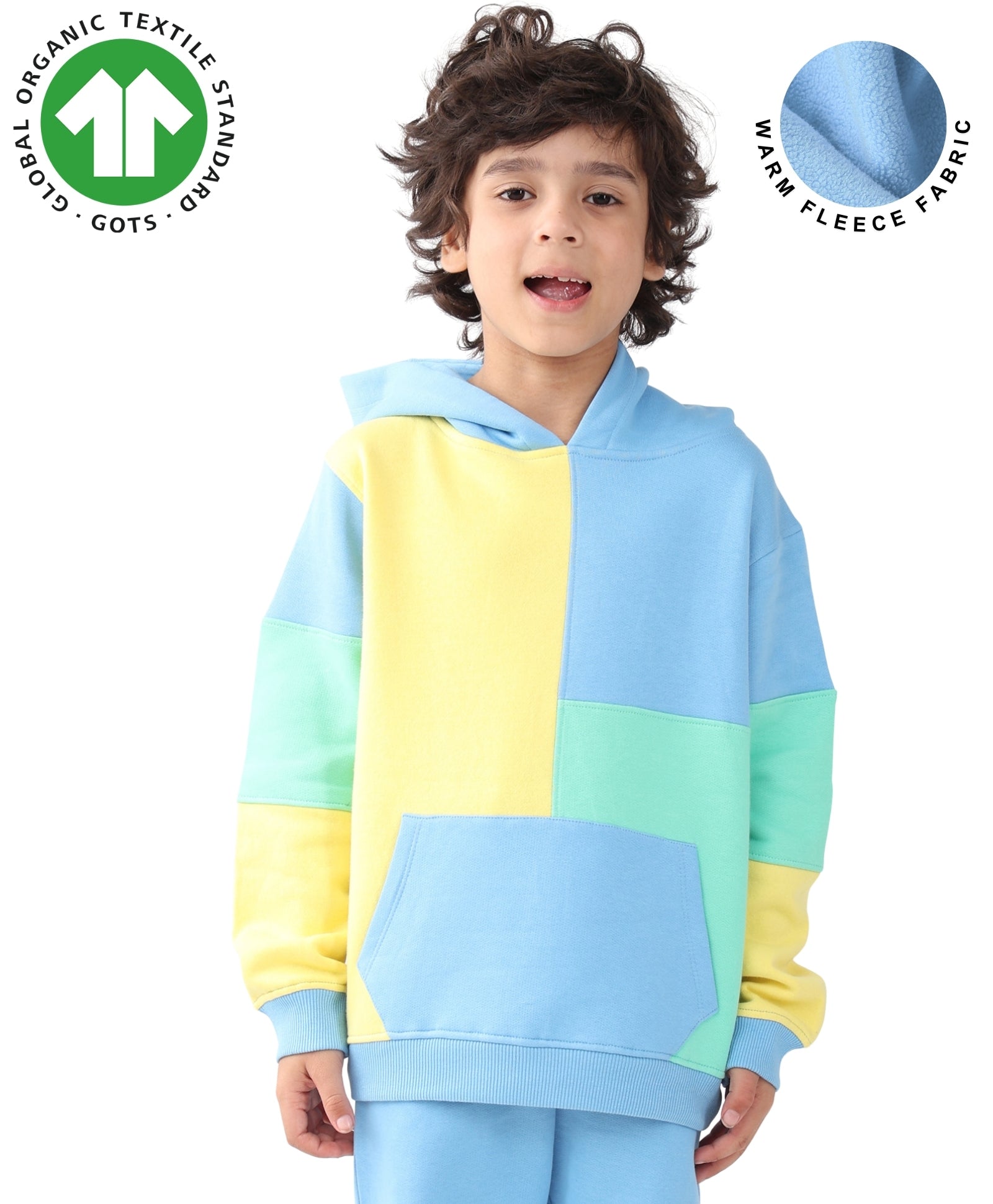 YELLOW SEA GREEN BLUE COLOR BLOCK HOODIE - YELLOW SEA GREEN BLUE